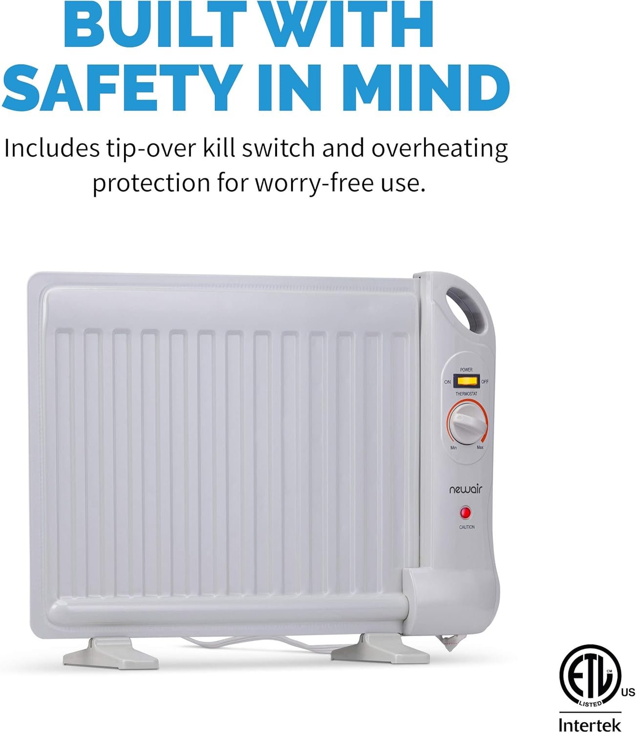 This energy-efficient portable heater uses 400-watts of energy to help you save on your electricity bills. Enjoy additional efficiency features: the oil in the radiator heats up quickly, stays hot for longer, and continues to stay warm after you shut it off. You’ll get lasting heat at a lower cost.