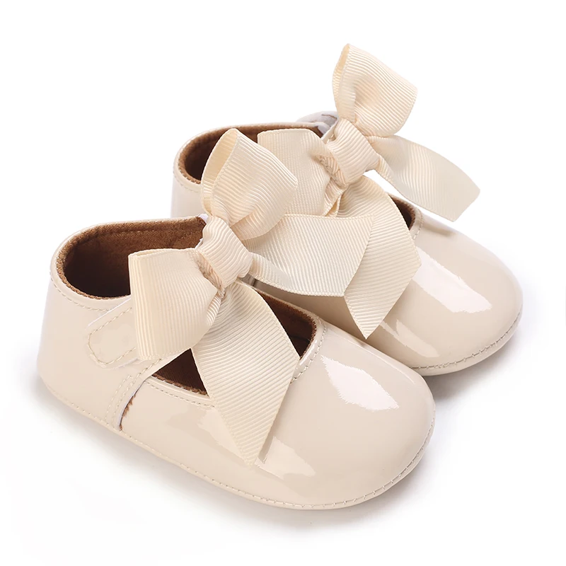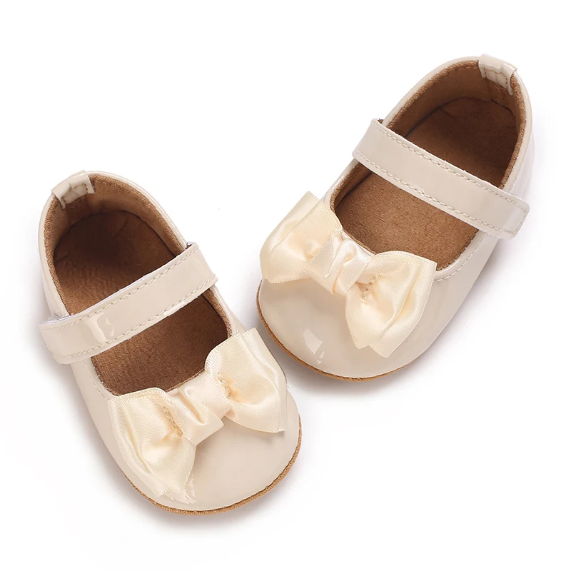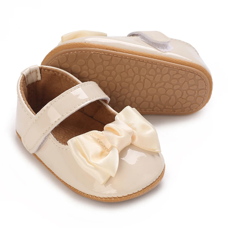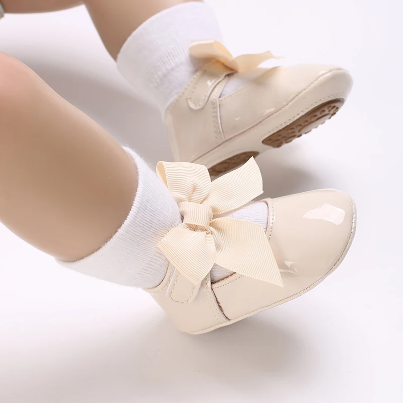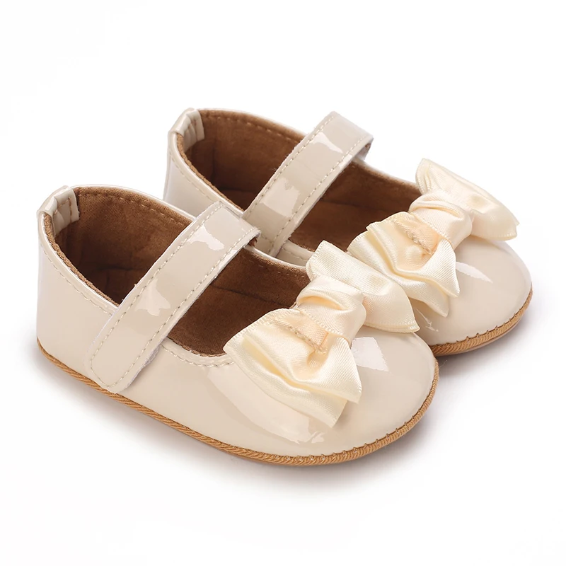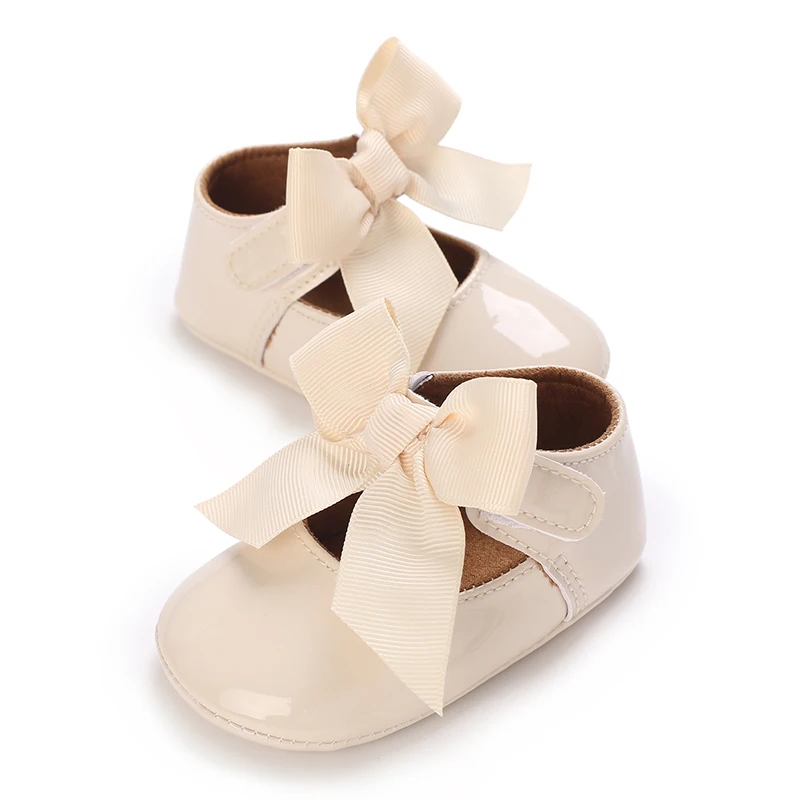 Newborn Apricot Soft and Sweet Princess Shoes for 0-1 Year Old Girl with Bow and Adhesive Sole Outdoor Anti slip Walking Shoes