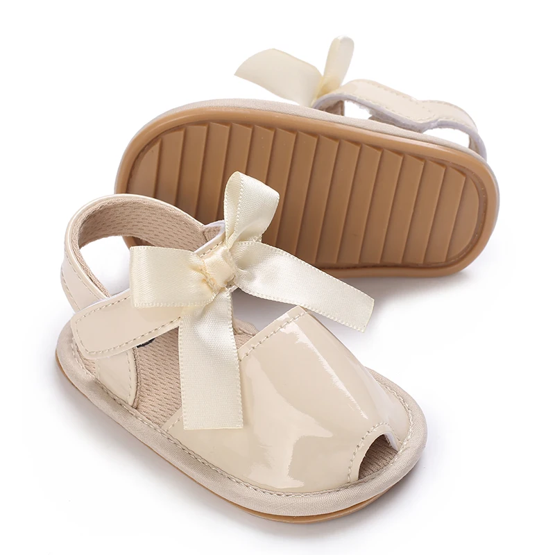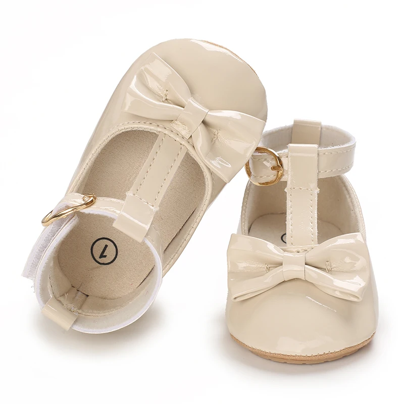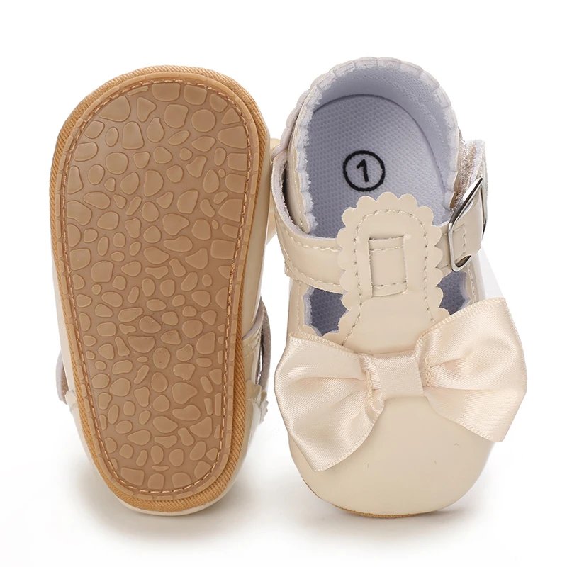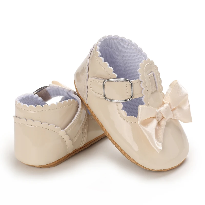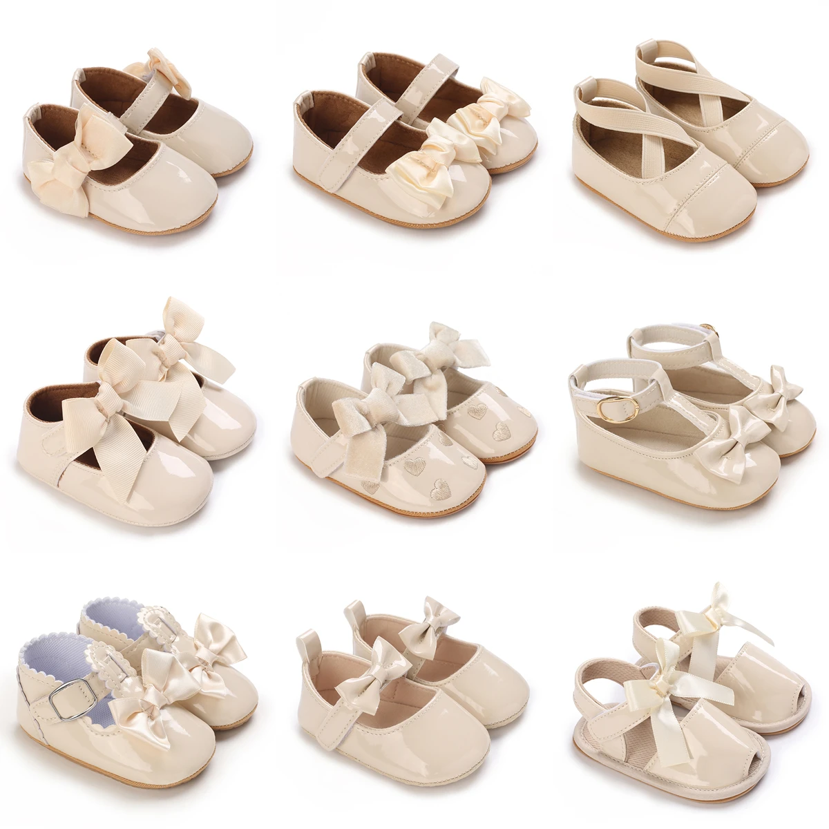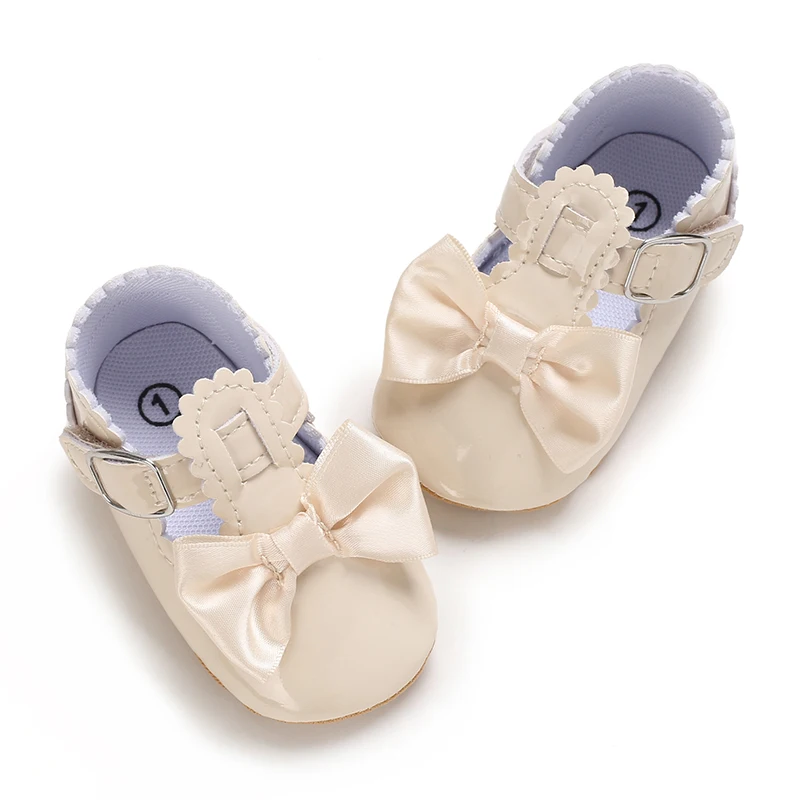 Newborn Apricot Soft and Sweet Princess Shoes for 0-1 Year Old Girl with Bow and Adhesive Sole Outdoor Anti slip Walking Shoes