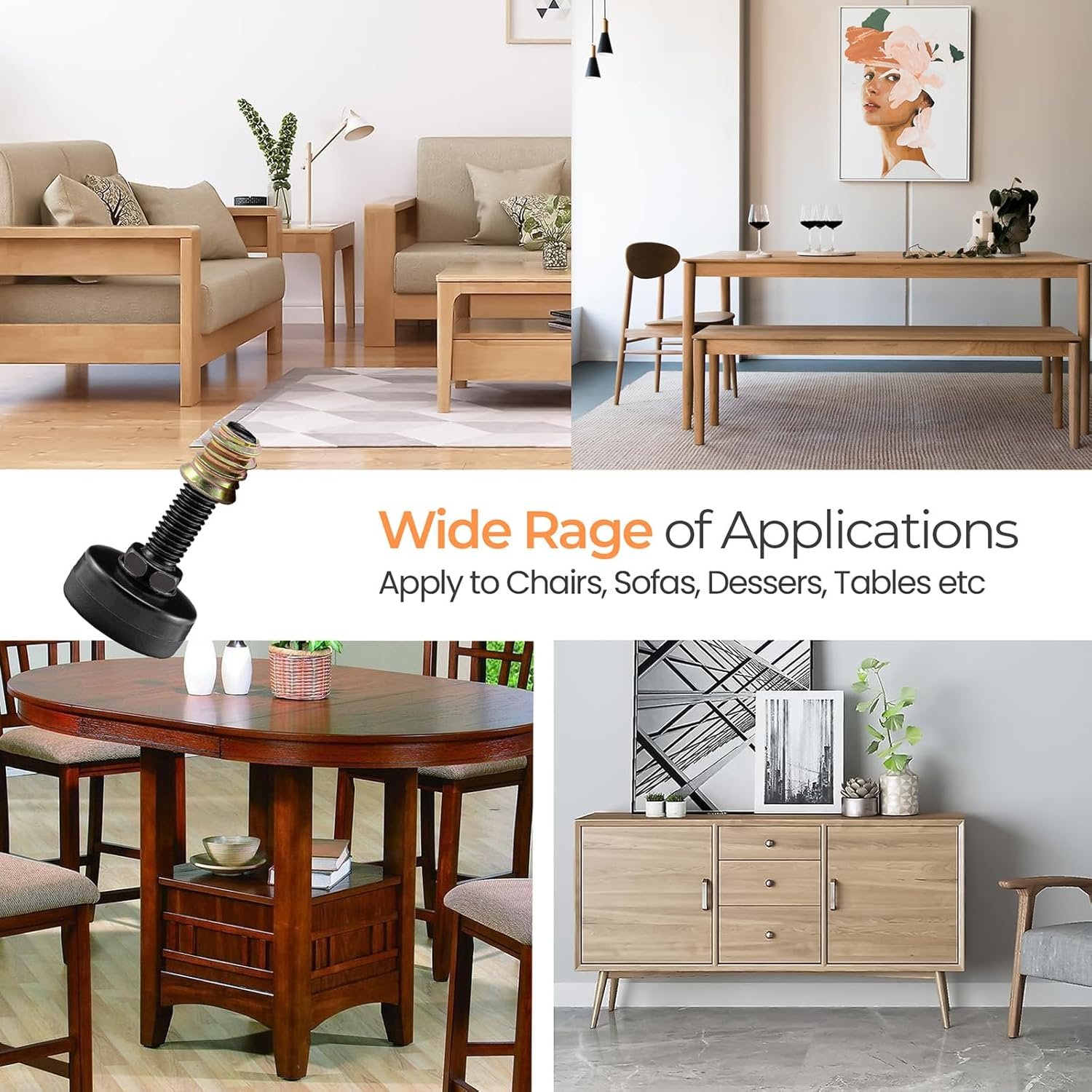 ✅【M8 Adjustable Furniture Feet】Customize your patio, kitchen, or living room furniture with our M8 thread levelers, offering a 0.6″ to 1.4″ height adjustment range.❗❗❗ Recommended for heavy duty furniture with leg diameters over 1-1/4″.