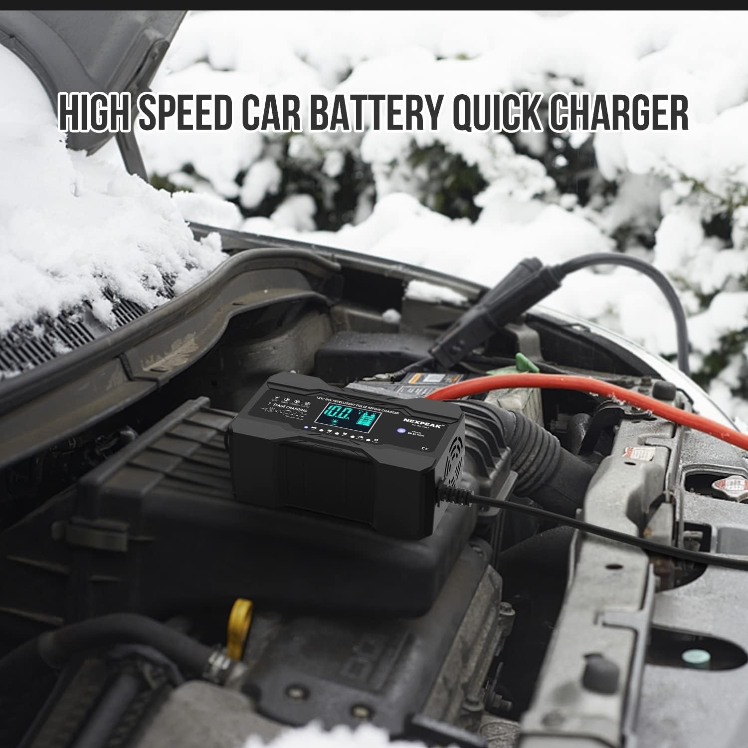 【HIGH-EFFICIENCY PULSE REPAIR】Automatically detects battery sulfation and acid stratification, take newest pulse repair function to restore lost battery performance for stronger engine starts and extended battery life. Note: can not activate or charging totally dead batteries.