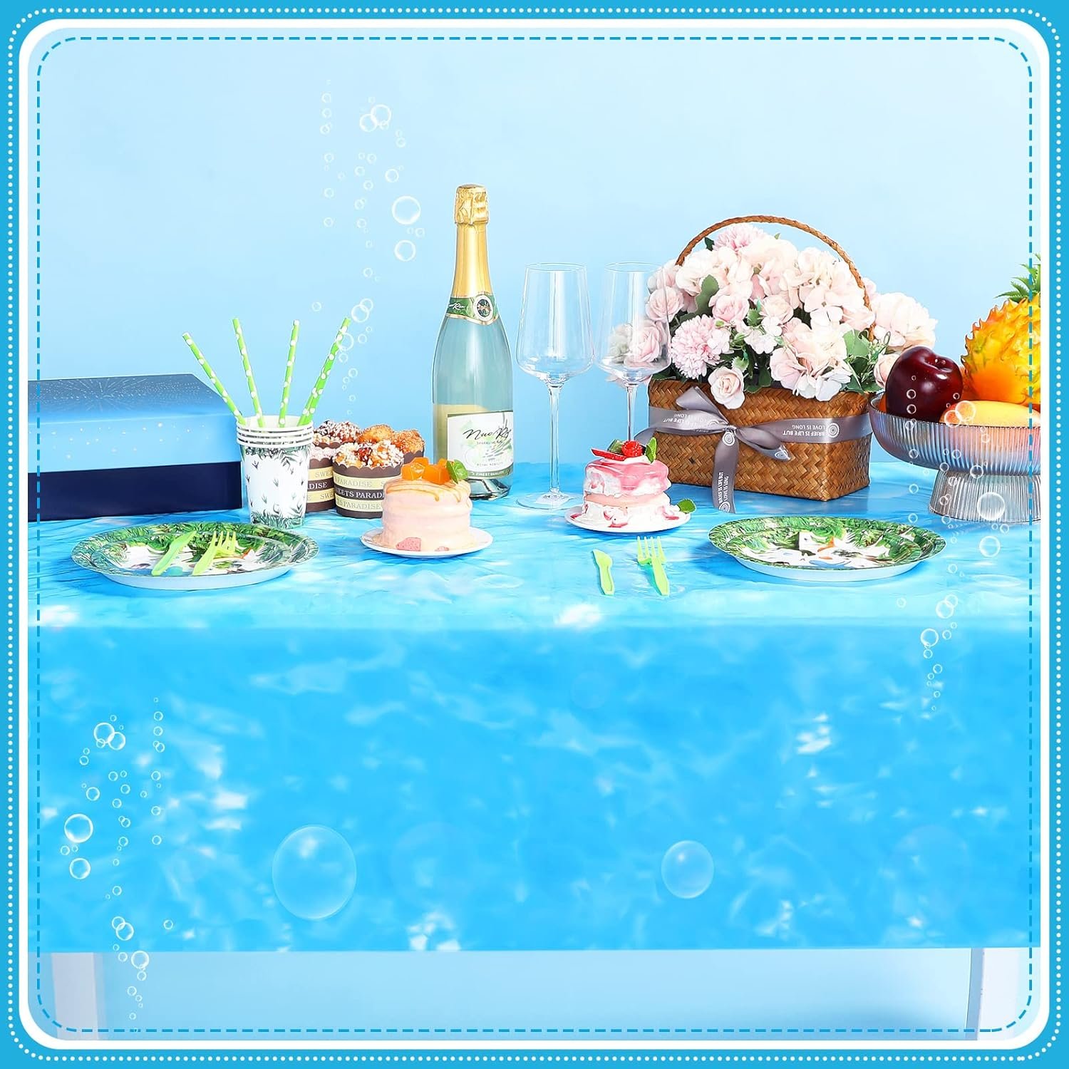 Multiple Use: these bubble plastic tablecloths are very flexible in use, you can use for many occasions, not only suitable for beach parties, but also nice for pirate parties, underwater birthday parties, mermaid birthday parties, summer pool parties, ocean theme parties, beach theme parties, gravity waterfall parties and so on