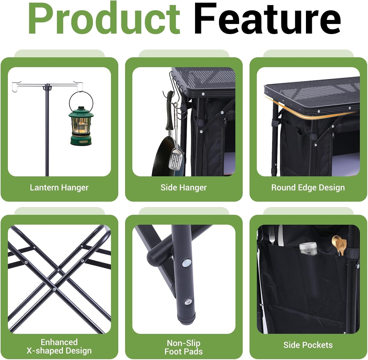 Nice C Camping Kitchen Station, Folding Table & Organizers, Upgrade Light Stand and Windshield Cooking Station, Carry Bag for Beach, Picnic (Black)