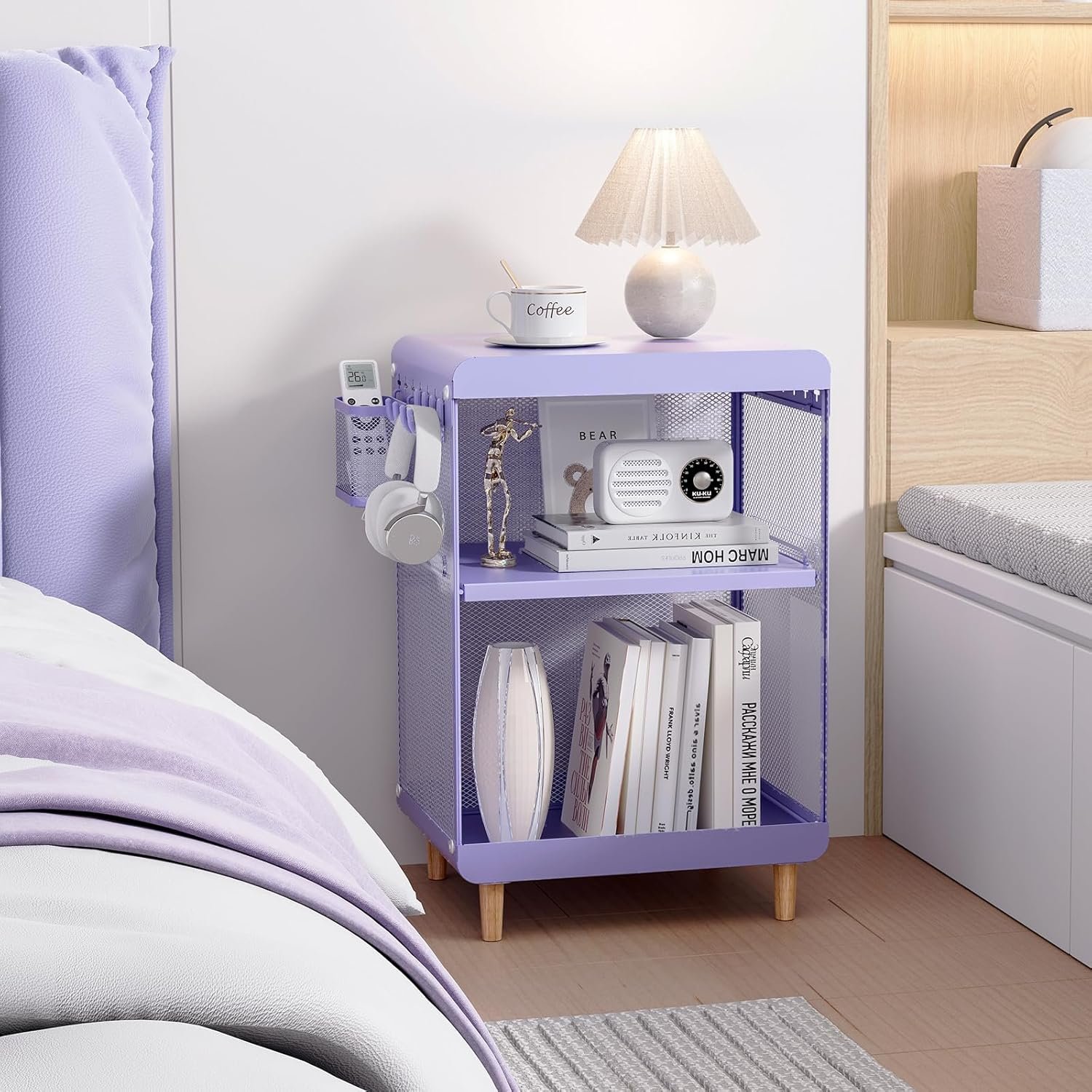 STURDY AND DURABLE – Side table with 2 tier storage shelves and 1 open shelf gives you plenty of storage space. The sofa end table is made of thickened metal frame, sturdy and durable. The bottom is equipped with wooden legs, which can not only adjust the stability of the end table, but also protect the ground from scratches. The cute night table provides you with comfortable use,it is very suitable as a sofa side table,a bedside table, an accent table or a storage side table in your house.