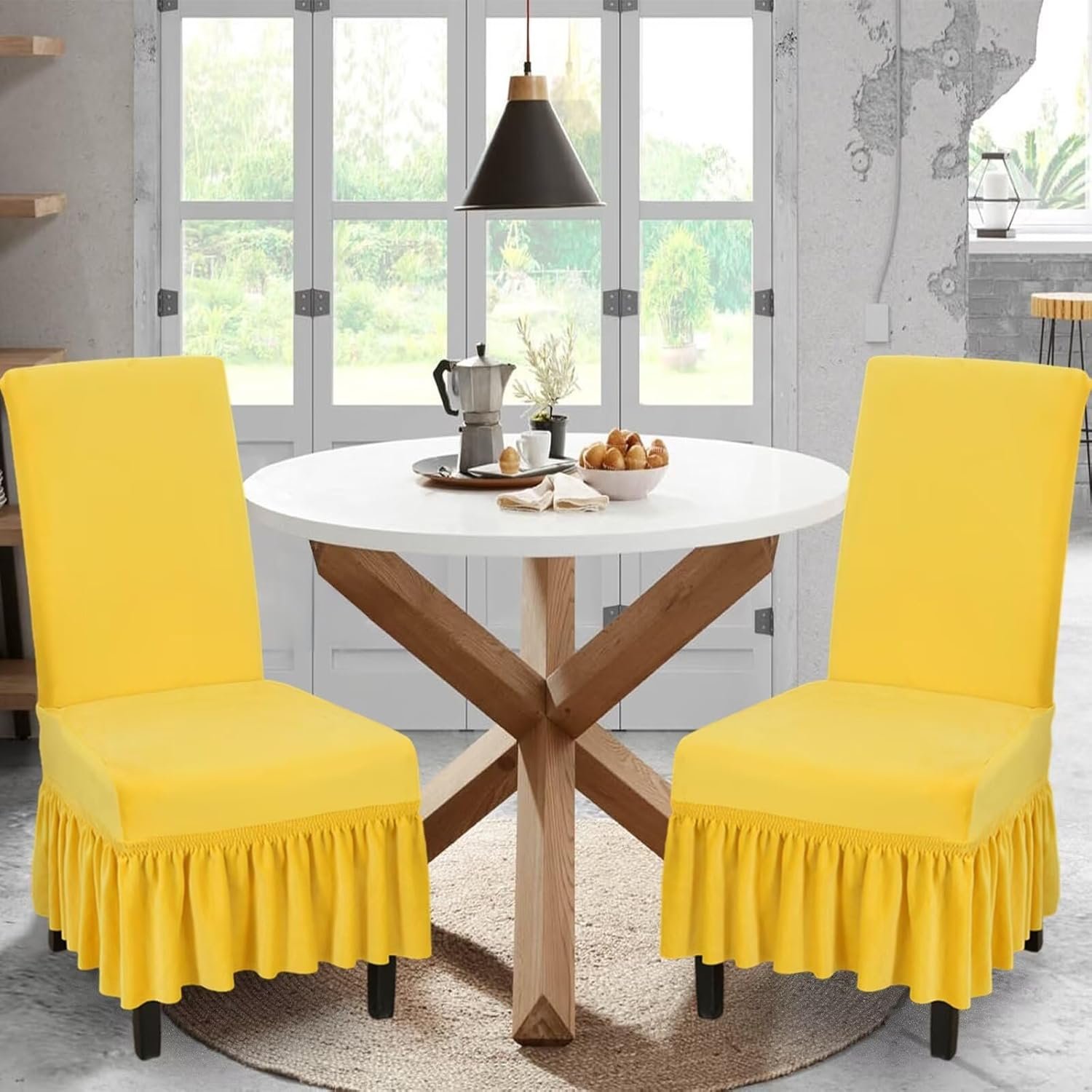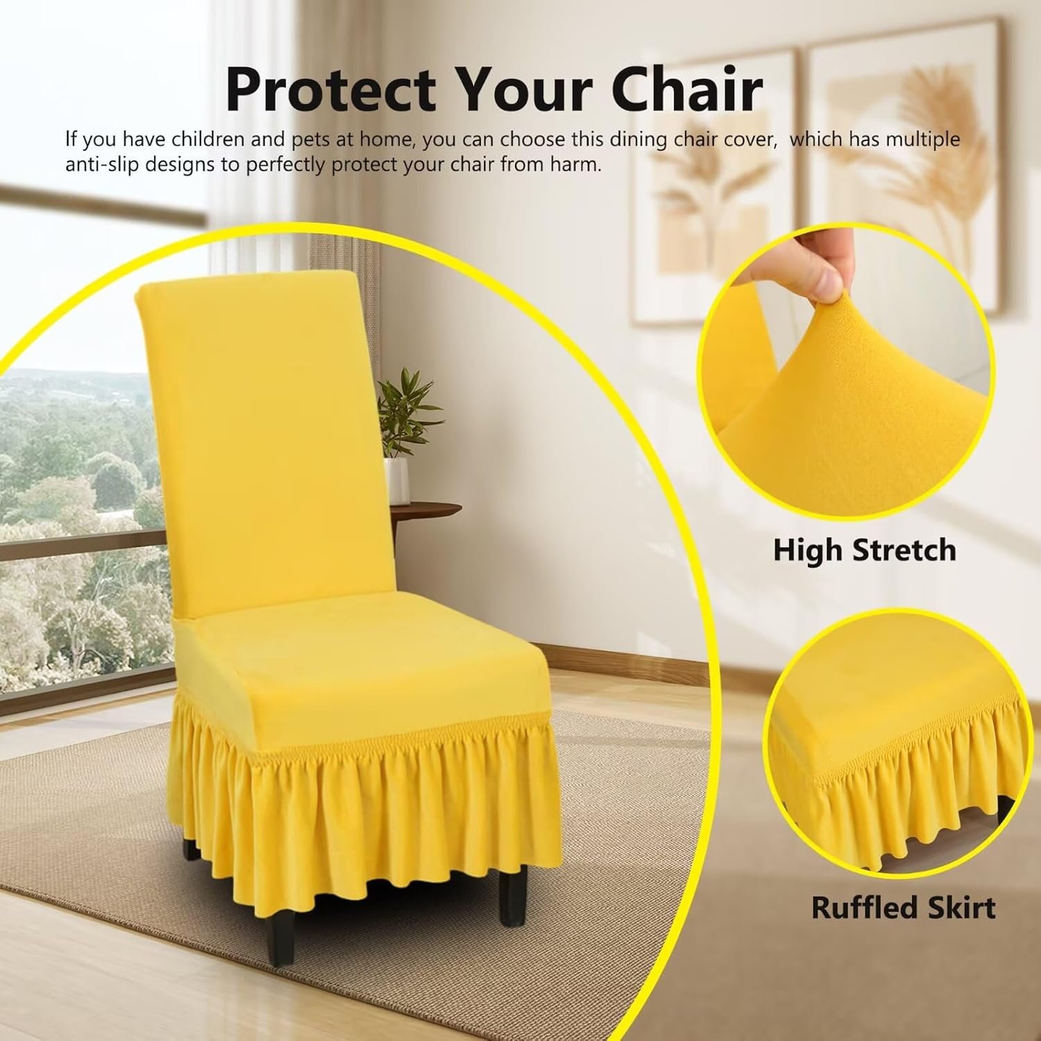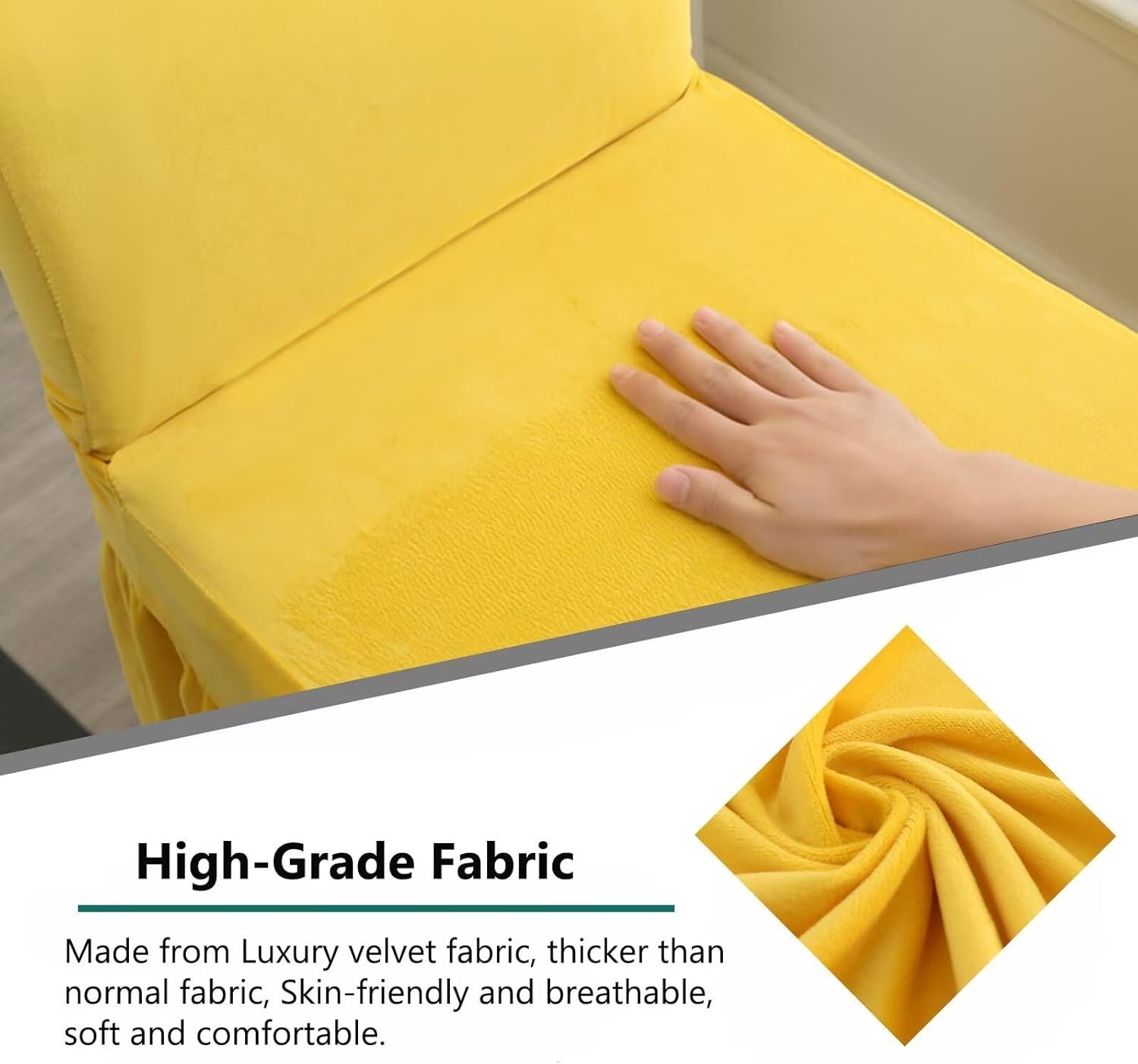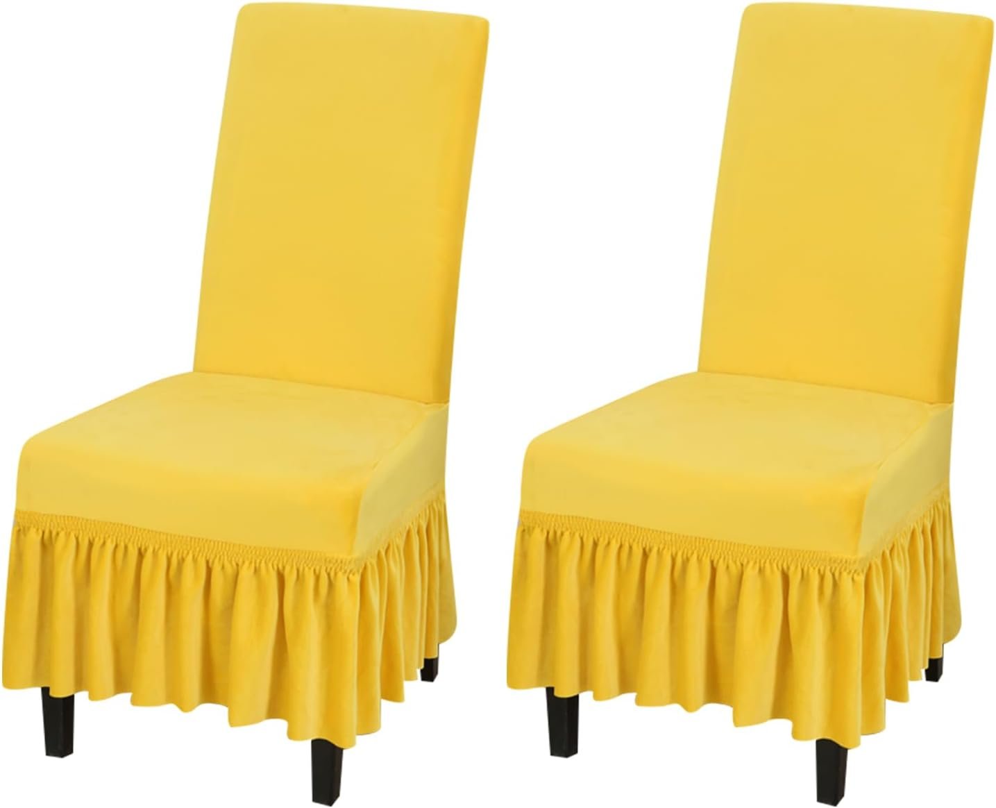 NILUOH Velvet Chair Covers with Skirt Stretchy Dining Room Chair Covers Parsons Chair Slipcovers, Universal Fit Non-Slip Furniture Protector Cover for Home, Kitchen, Banquet (2PCS, Yellow)
