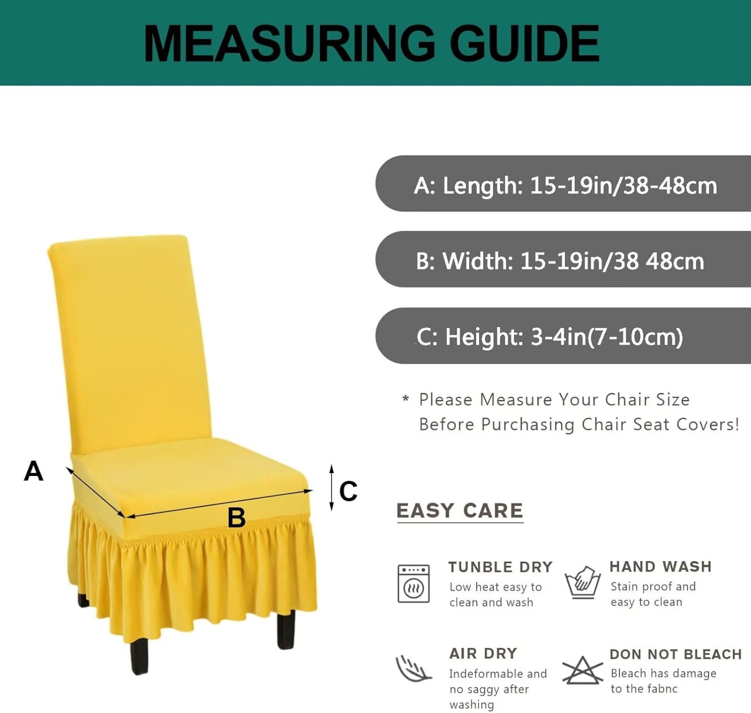Easy Installation & Care: The parsons chair slipcover with skirt is removable, easy to put on and off. Machine washable (cold), do not iron, low drying. Due to some lighting reasons, the color of each display will be different, so please refer to the actual color.