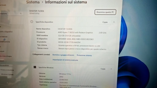 Beautiful. Aluminum chassis. 8/16 Ryzen 5000 processor with integrated Radeon VEGA 8 graphics. 32GB RAM DDR4 3200MHz in 2 sticks, each 16GB. If desired, they can be replaced with two 32GB banks. 1TB SSD NVME Gen3. There is a second M.2 slot for another NVMe SSD, up to Gen4. Supports NVMe SSD up to 4TB. It turns on very quickly. The fingerprint sensor, once configured, unlocks the PC instantly. The monitor is a 15.6″ IPS FullHD 60hz, of good quality. The keyboard, US layout, is backlit (can be turned off as desired). The touchpad is very large and comfortable. All for just over €300. There is no competition.