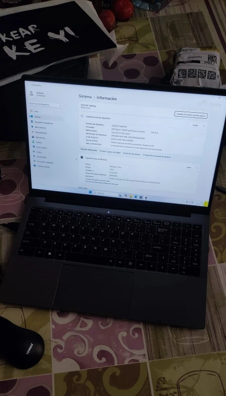 Includes 65W charger, wired mouse and 20cm square mouse pad. Backlit keyboard, with stickers for letters in Spanish. The shipment arrived in 15 days when it was expected to take a month, with perfect packaging, taxes and VAT already paid.