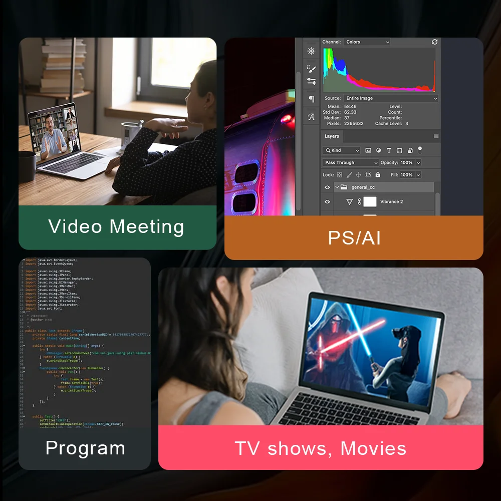 offers a delightfully vibrant display that delivers stunning color accuracy and detailed images that also can help reduce eye strain from long work hours.