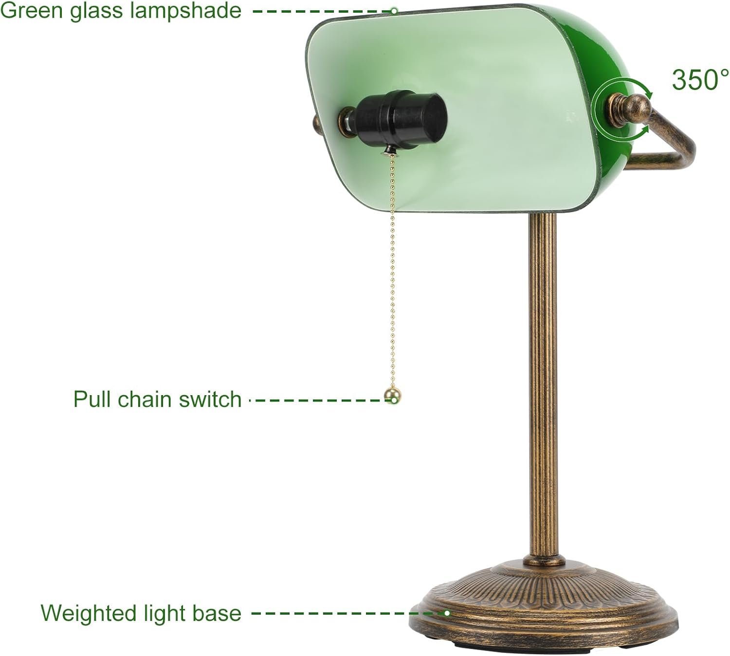 【350° Rotatable Shade】This green bankers lamp fixture can be freely rotated, flexible adjustment of lighting direction and larger illumination zone, you can rotate the lamp shade angle to achieve optimal lighting effect.