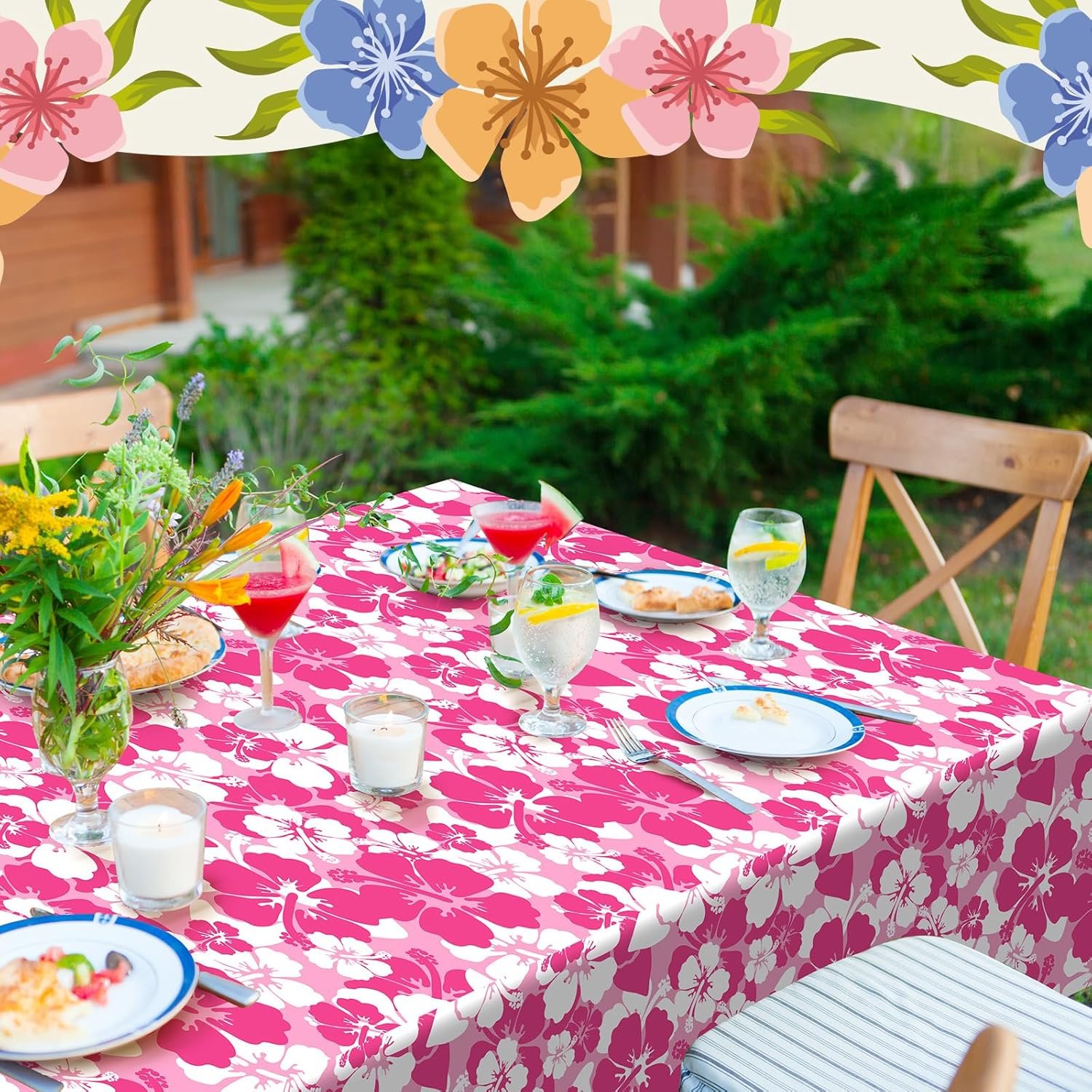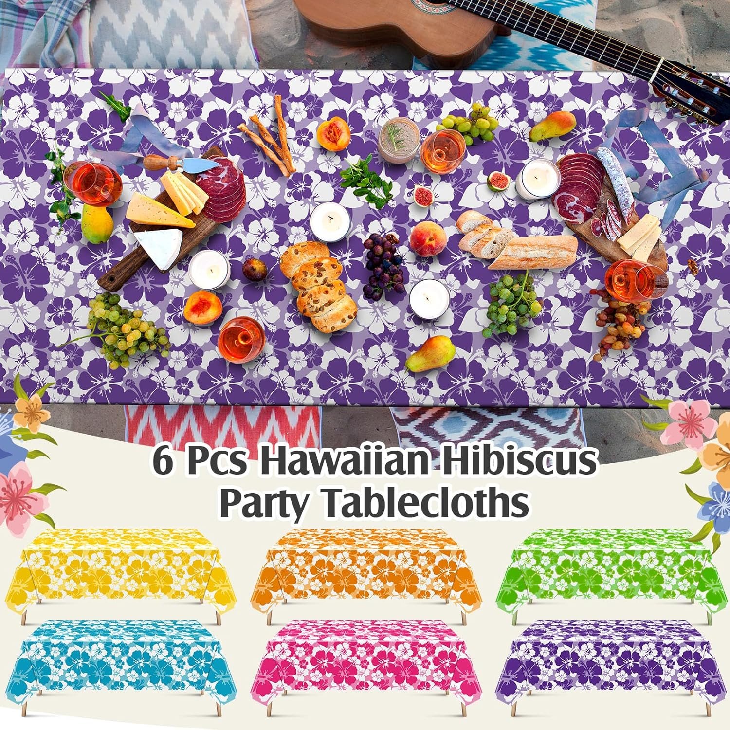 Nitial 6 Pcs Hawaiian Hibiscus Party Tablecloths Plastic Disposable Luau Table Covers for Tropical Ahola Luau Tiki Bar Party Supplies Summer Beach Pool Birthday Decorations, 108 x 54 Inch