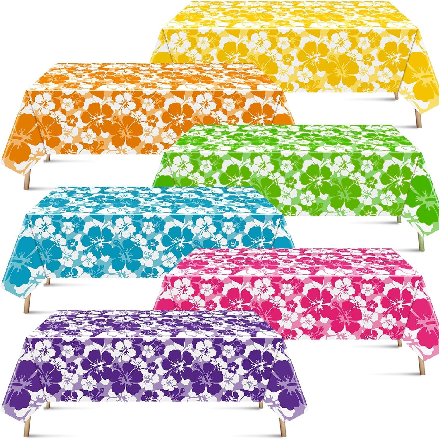 Package Contents: there are 6 Hawaiian themed party tablecloths with vibrant tropical hibiscus flower designs, ideal additions to luaus, beach parties or pool parties, vibrant green, blue, orange, pink, yellow and purple bring a touch of Hawaiian style to your summer trip