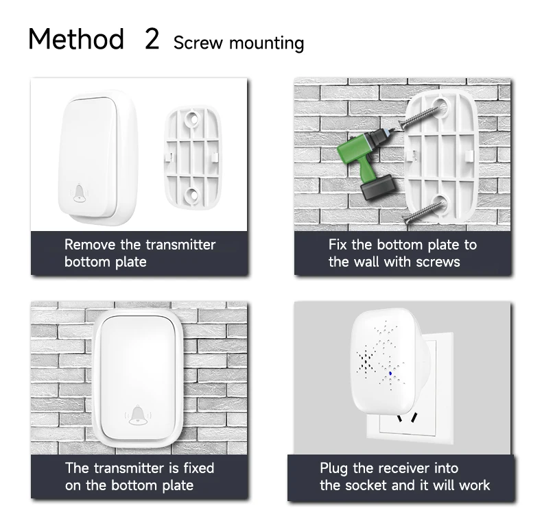 3.Due to the significant shielding effect of metal on wireless signals, please do not attach the transmitter to metal doors such as iron doors, anti-theft doors, fire doors, etc. In addition, the receiver should not be obstructed by metal plates.