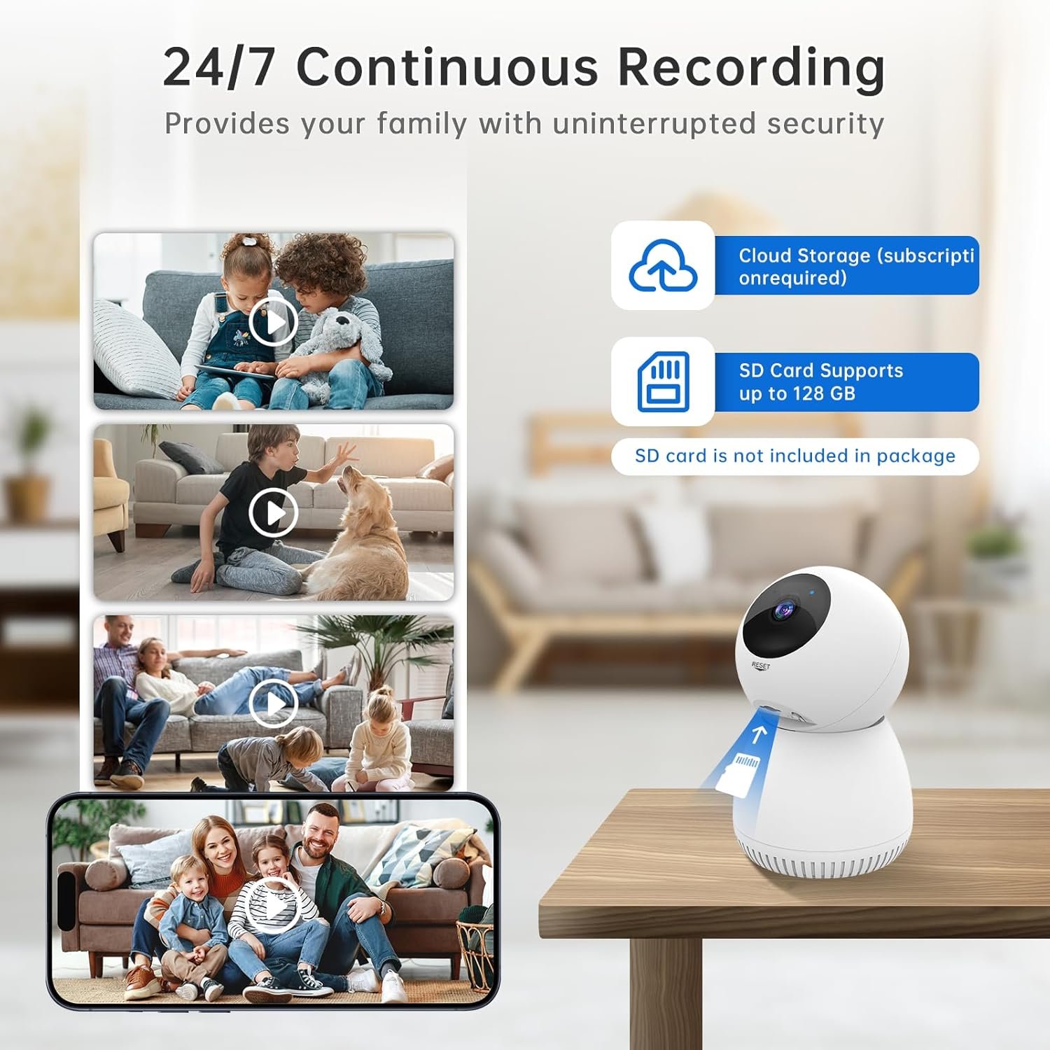 【Support Cloud&SD Card Storage】Indoor security camera supports two storage modes: cloud storage and microSD card storage (supports up to 128G capacity SD card). With cloud storage encryption technology, data privacy is protected at the highest level. No one can access the cat camera information without your permission. Wireless camera indoor supports recording and saving videos 24/7, making playback easier.