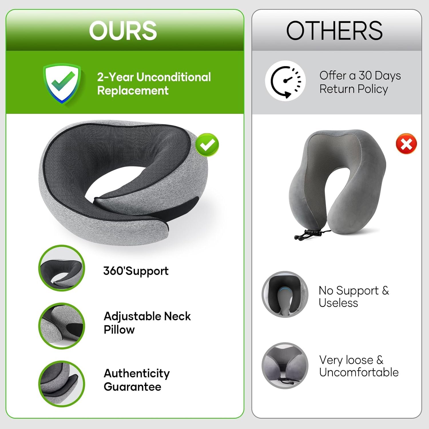 【NOTE】 Upon opening, allow the travel pillow to sit for a while to help the memory foam fully rebound. Any initial odor is normal; simply place the pillow in a well-ventilated, sunny spot to air out.For any missing parts or sizing concerns, please reach out to the seller for prompt and satisfactory assistance.