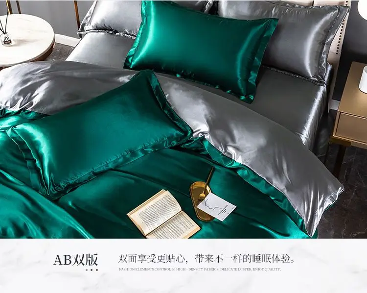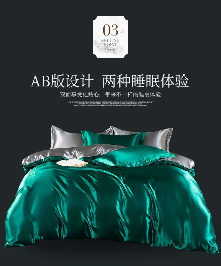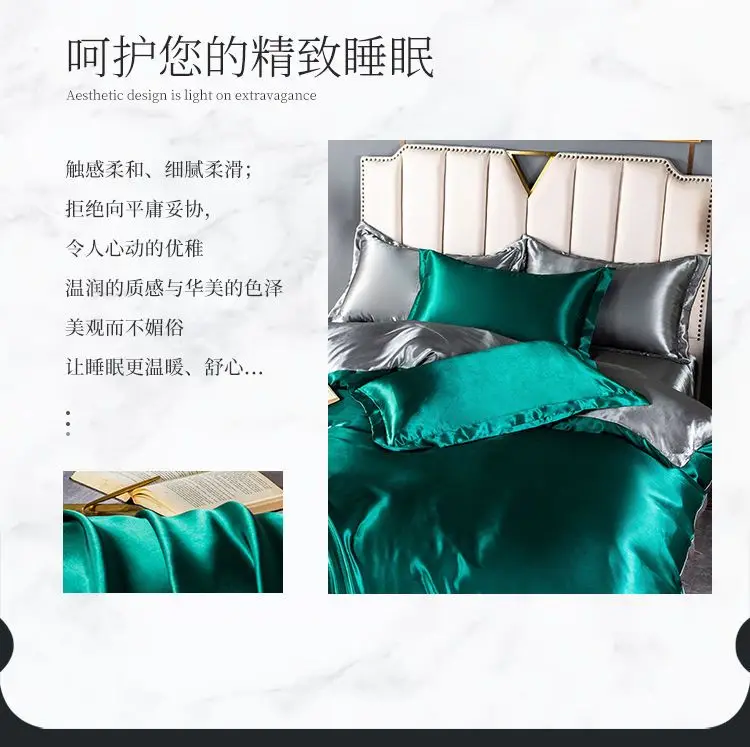 1 review for Nordic Satin Silk Bedding Set with Duvet Cover Bed Sheet Pillowcases Luxury Solid Single Double Couple Pillow Case Bedsheet
