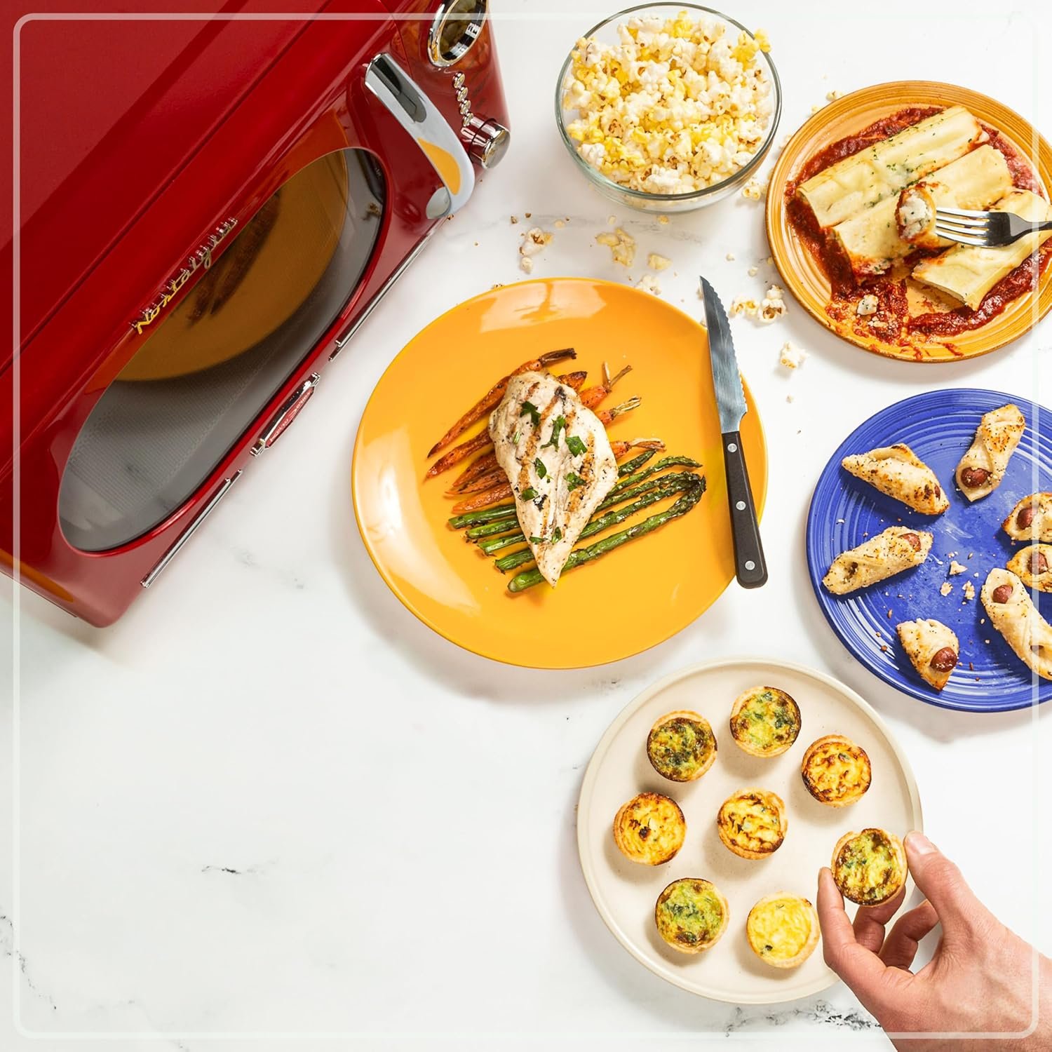 CONVENIENT CONTROLS: Includes 12 pre-programmed cooking settings, a delay timer, and express cooking provide options cooking dishes like popcorn, pizza, potatoes, veggies, and more.