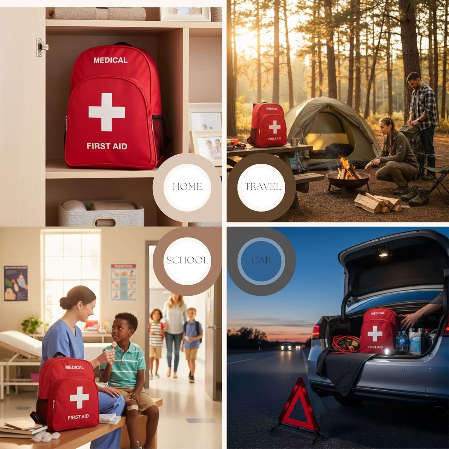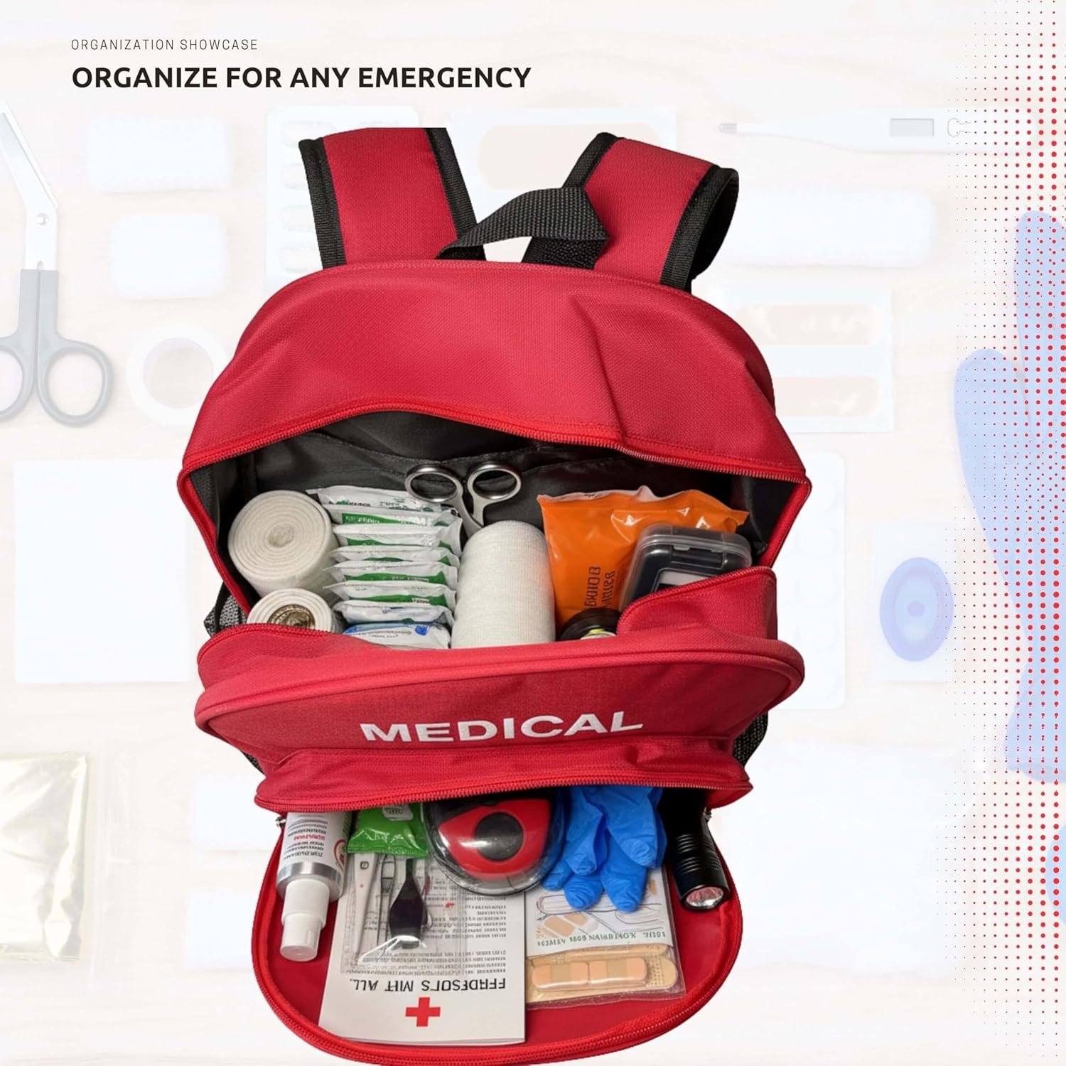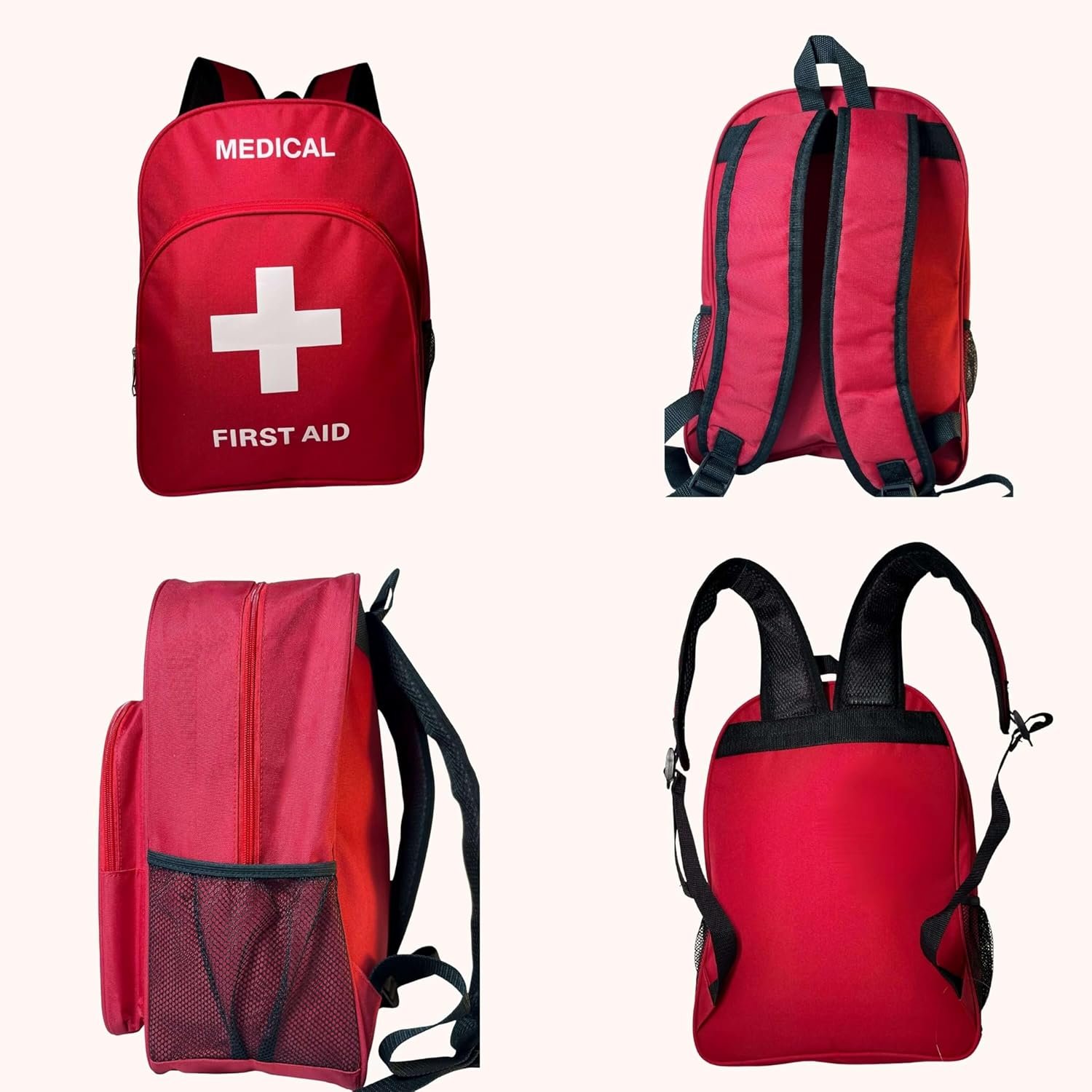 BUILT FOR THE MOMENT | YOUR ULTIMATE First Aid Kit Backpack This is your go-to gear for any critical situation. This emergency backpack is designed with a high-visibility red color and reflective strips to ensure it’s quickly identified in chaotic environments. Its rugged construction and rapid-deployment features provide dependable support when facing the unexpected.
