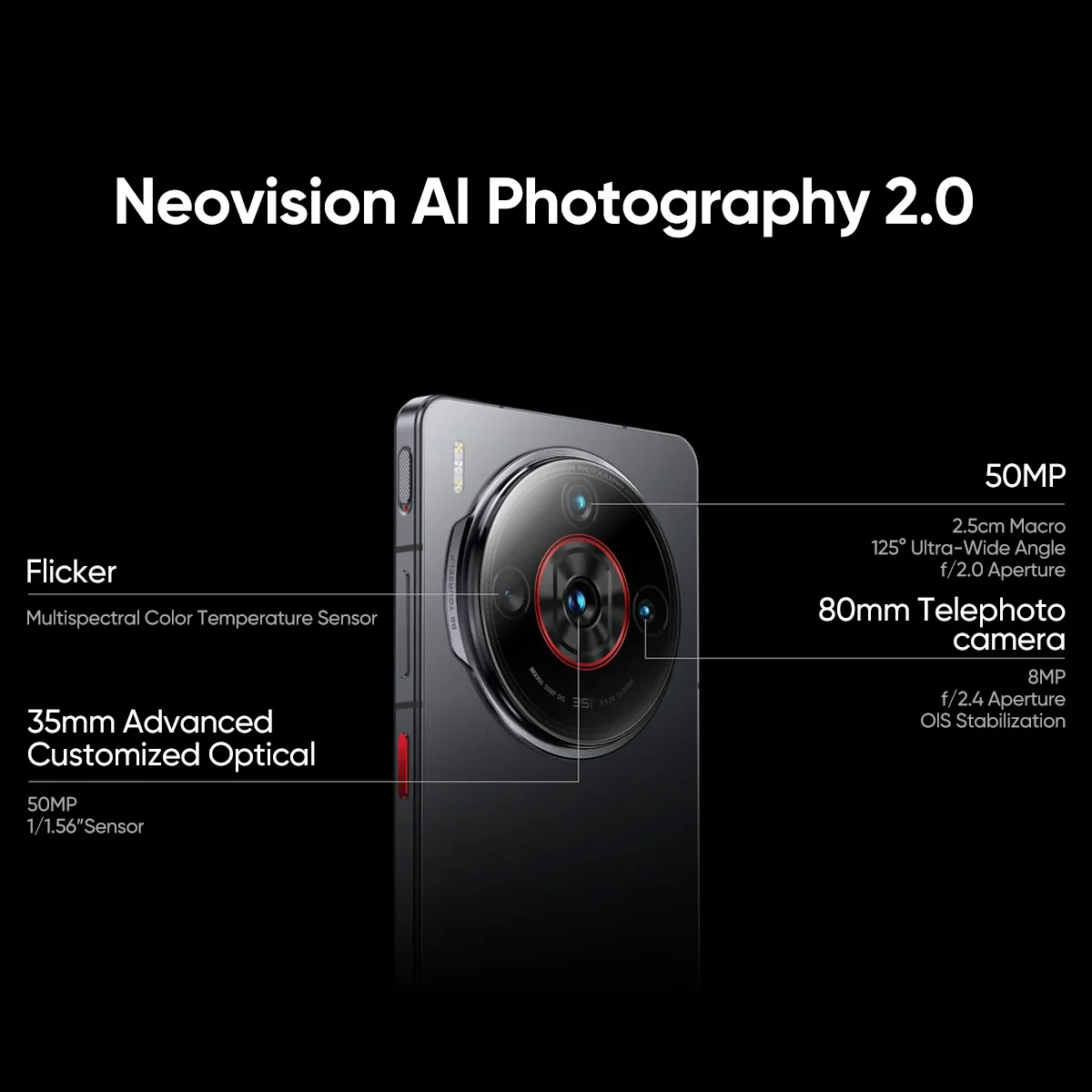 Camera: Front camera: 16MP, Rear camera: 50MP+50MP+8MP ,Filck