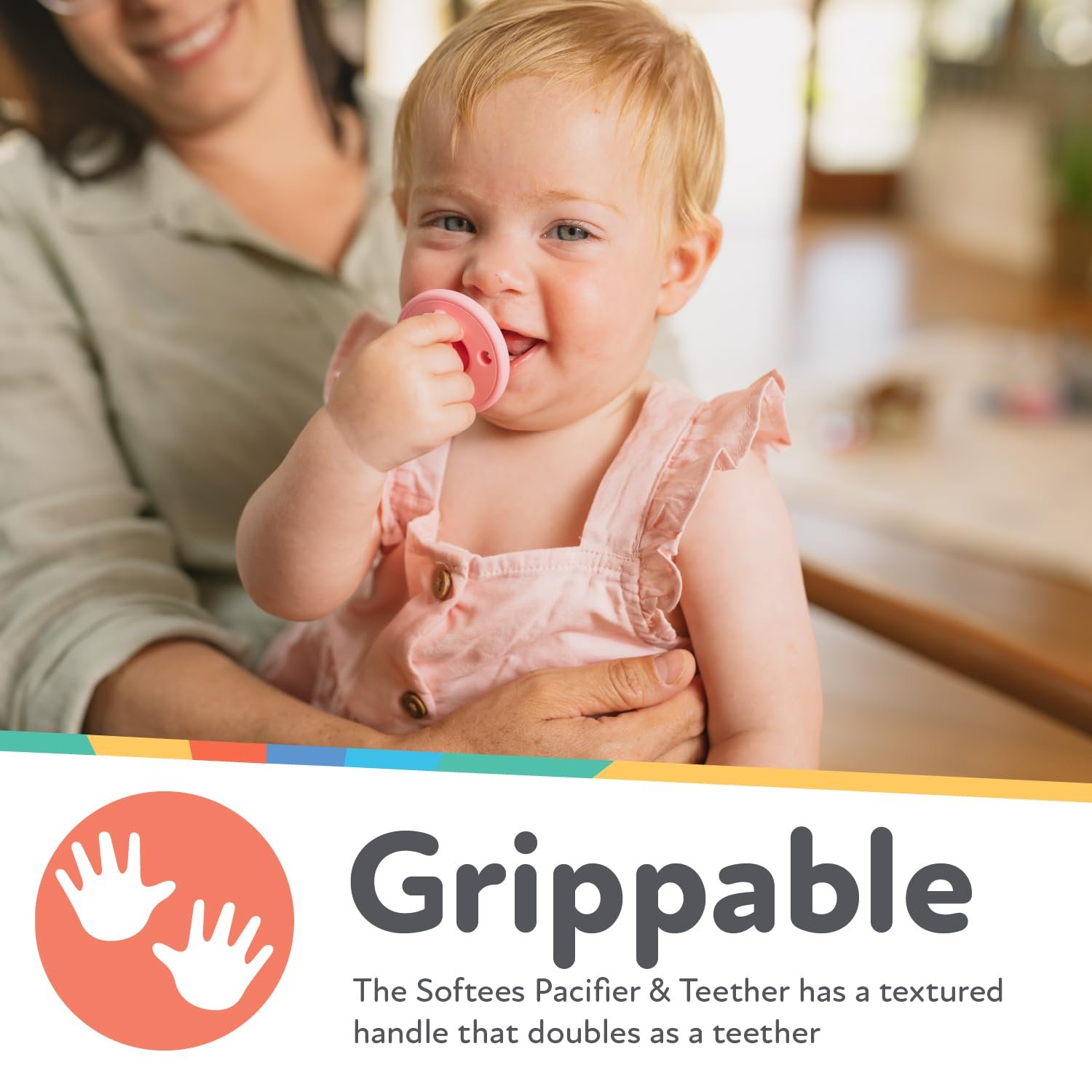 TEXTURED HANDLE: Each Softees pacifier comes with a textured handle that doubles as a teether