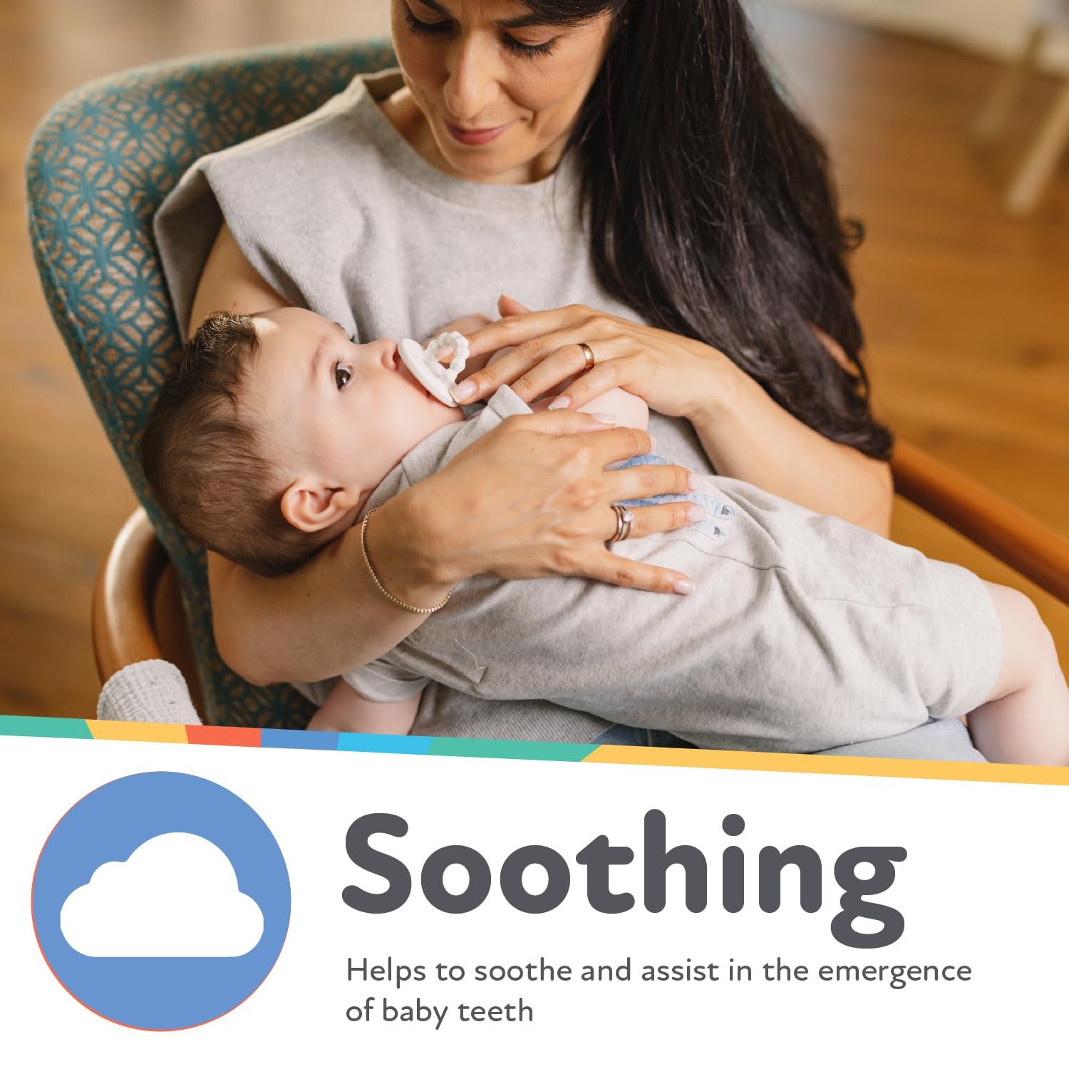 SILICONE PACIFIER AND TEETHER FOR BABIES: Made of durable and 100% soft silicone, this teether toy is perfect for sensitive, tender mouths, which provides teething relief without being rough on delicate gums