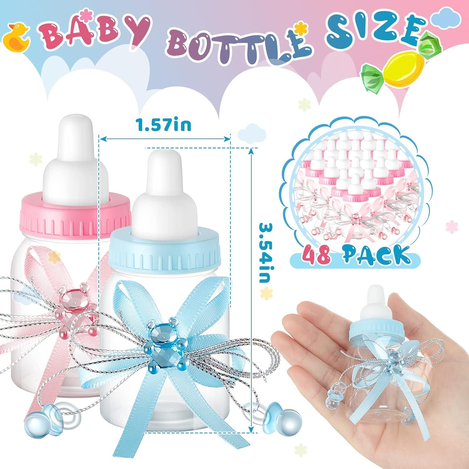 Rich in Quantity: you will receive 48 pieces baby bottle favors, measuring 9 x 4 cm/ 3.5 x 1.6 inches, which can be applied to store candy, chocolate and other small items and are nice decorations