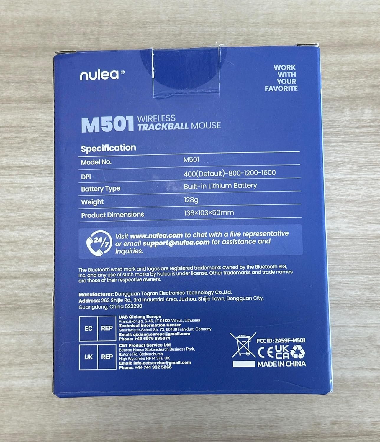 Nulea M501 Wireless Trackball Mouse, Rechargeable Ergonomic, Easy Thumb Control, Precise & Smooth Tracking, 3 Device Connection (Bluetooth or USB Receiver), Compatible for PC, Laptop, Mac, Windows.