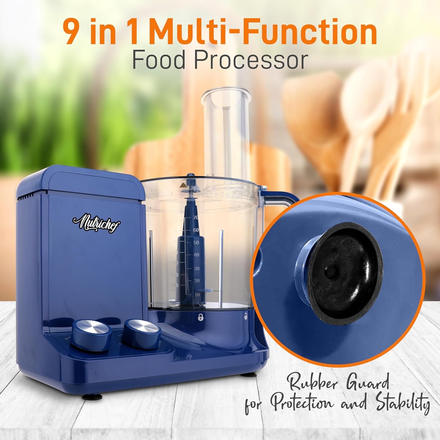 NutriChef Food Processor | 2 QT Capacity | Ultra-Quiet Multipurpose Motor | Includes 6 Attachment Blades | Silicone Base for Secure Grip | 12-Cup Capacity | Pre-Set Speeds for Easy Use (Blue)