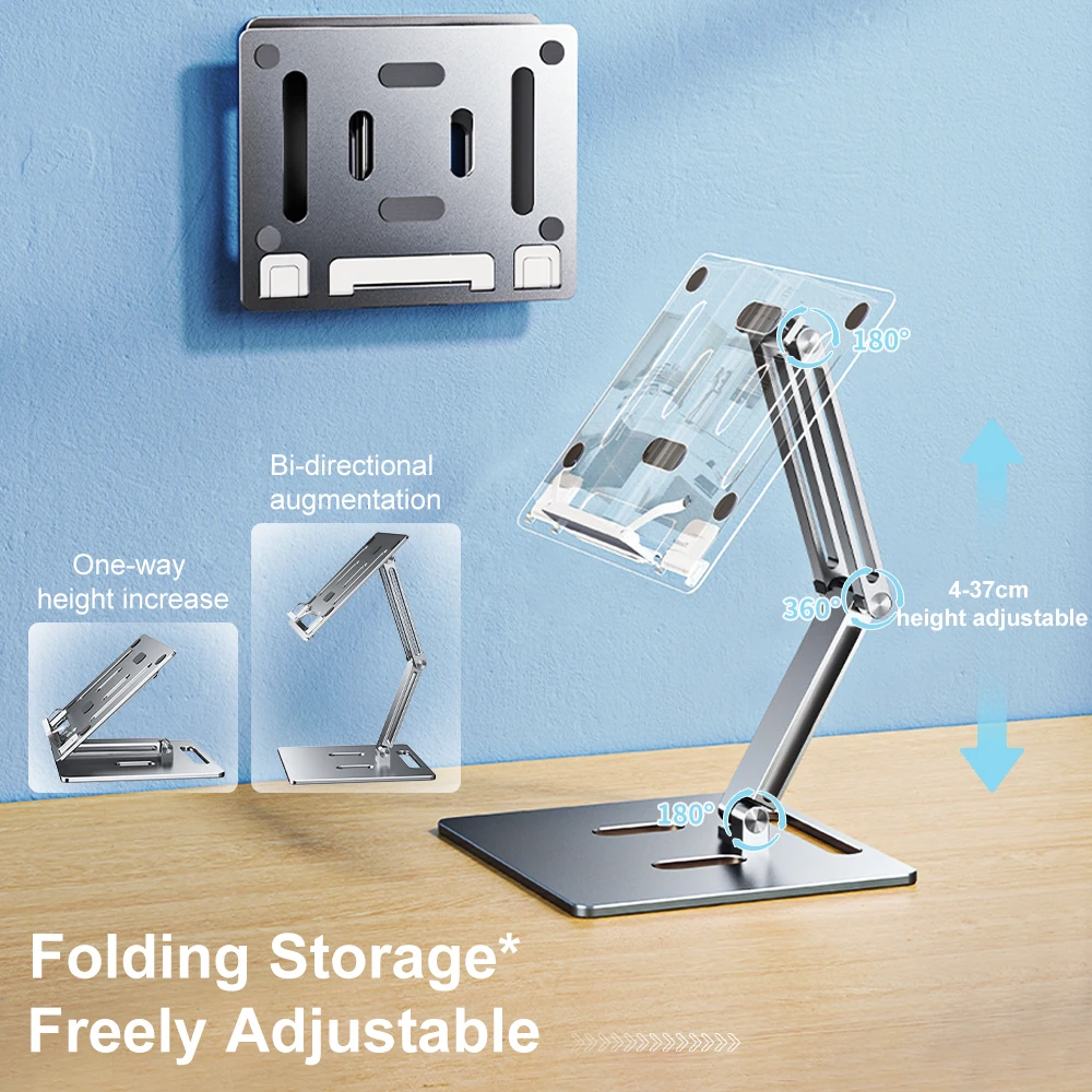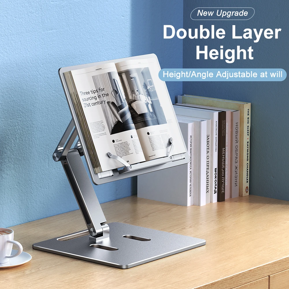 Oatsbasf Aluminum Laptop Stand Free Lift Height Multi-Angle Adjustable Reading Desk with Foldable Base Notebook Desktop Holder