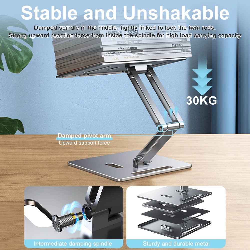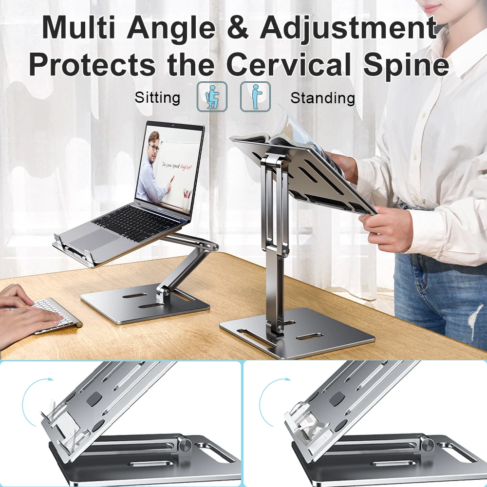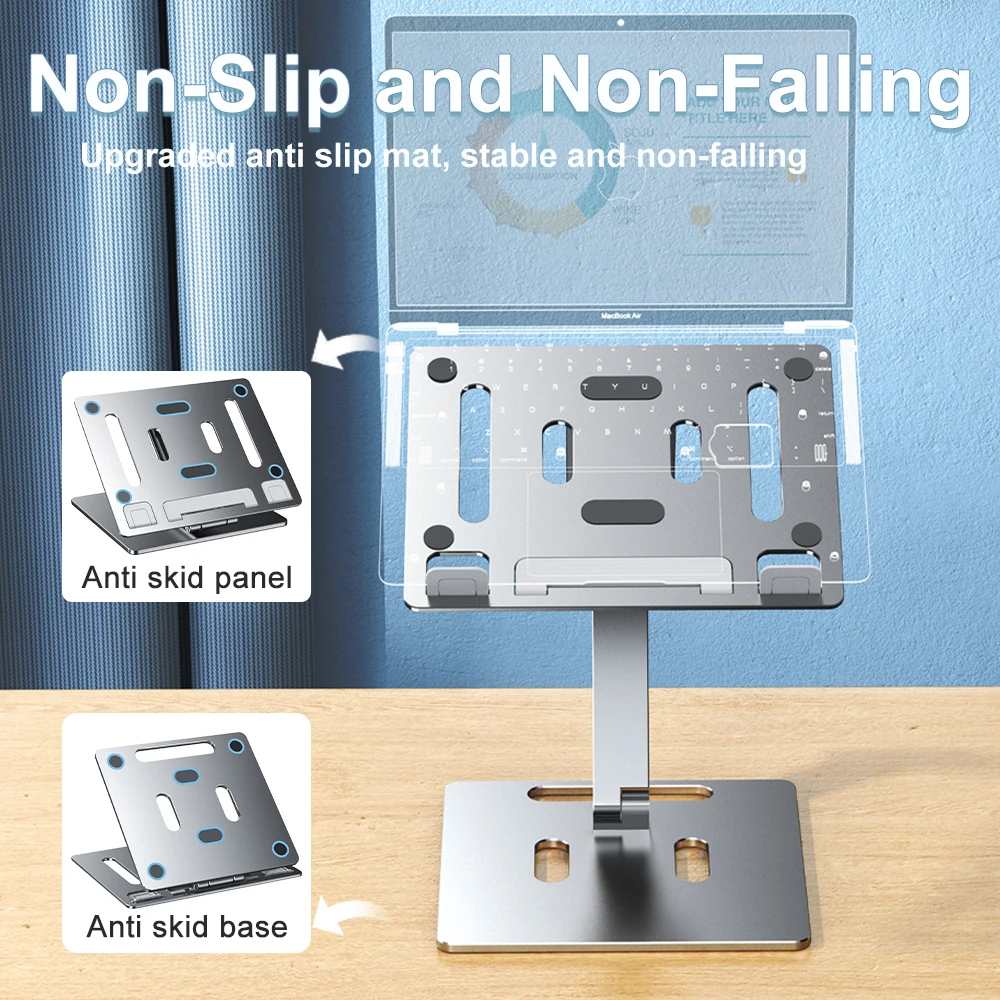 Crafted from high-quality aluminum, this laptop stand offers superior durability and stability, ensuring long-lasting use.