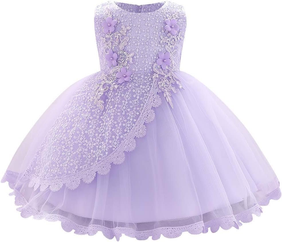 OBEEII Baby Girl Christening Baptism Gown Flower Embroidery Tutu Dress Special Occasion