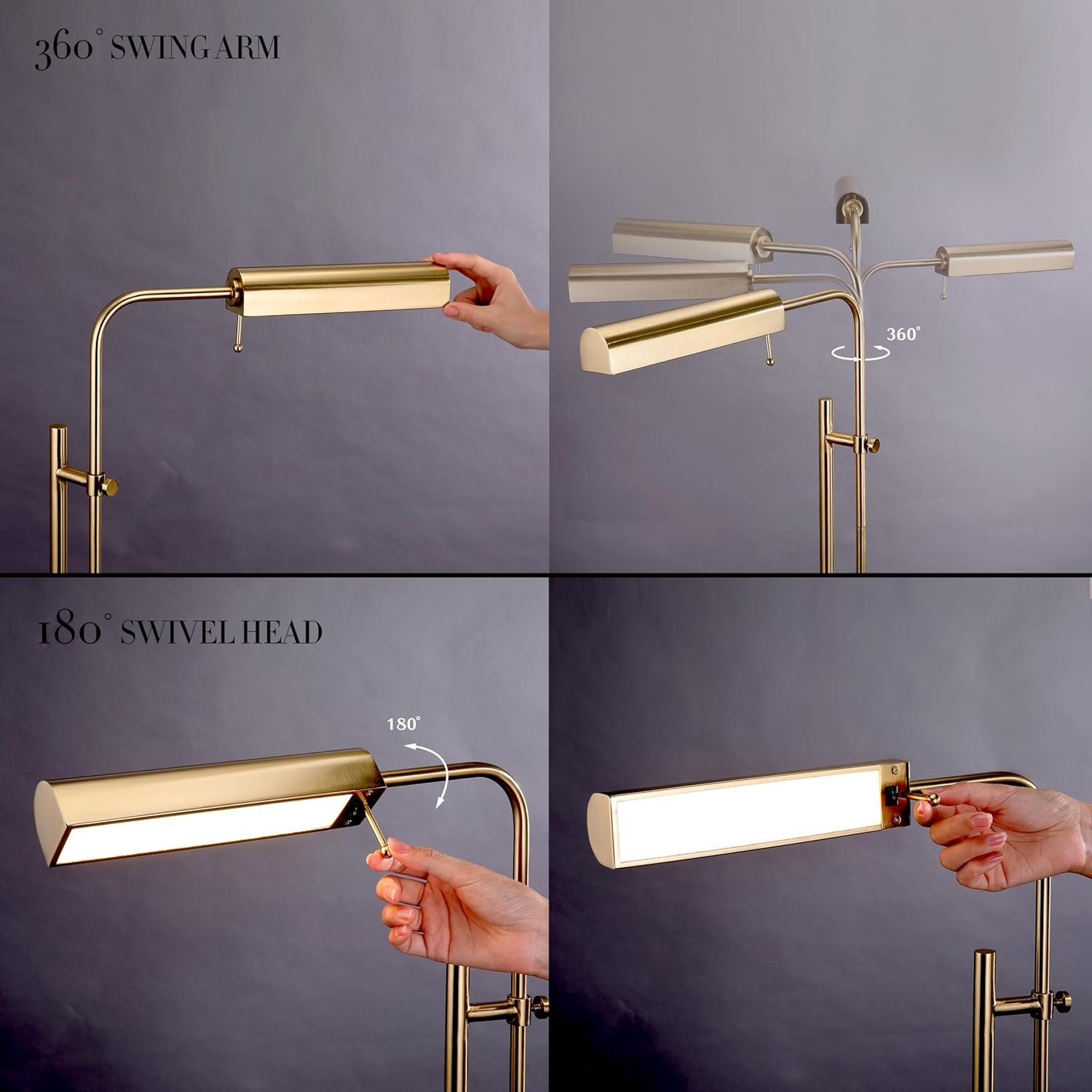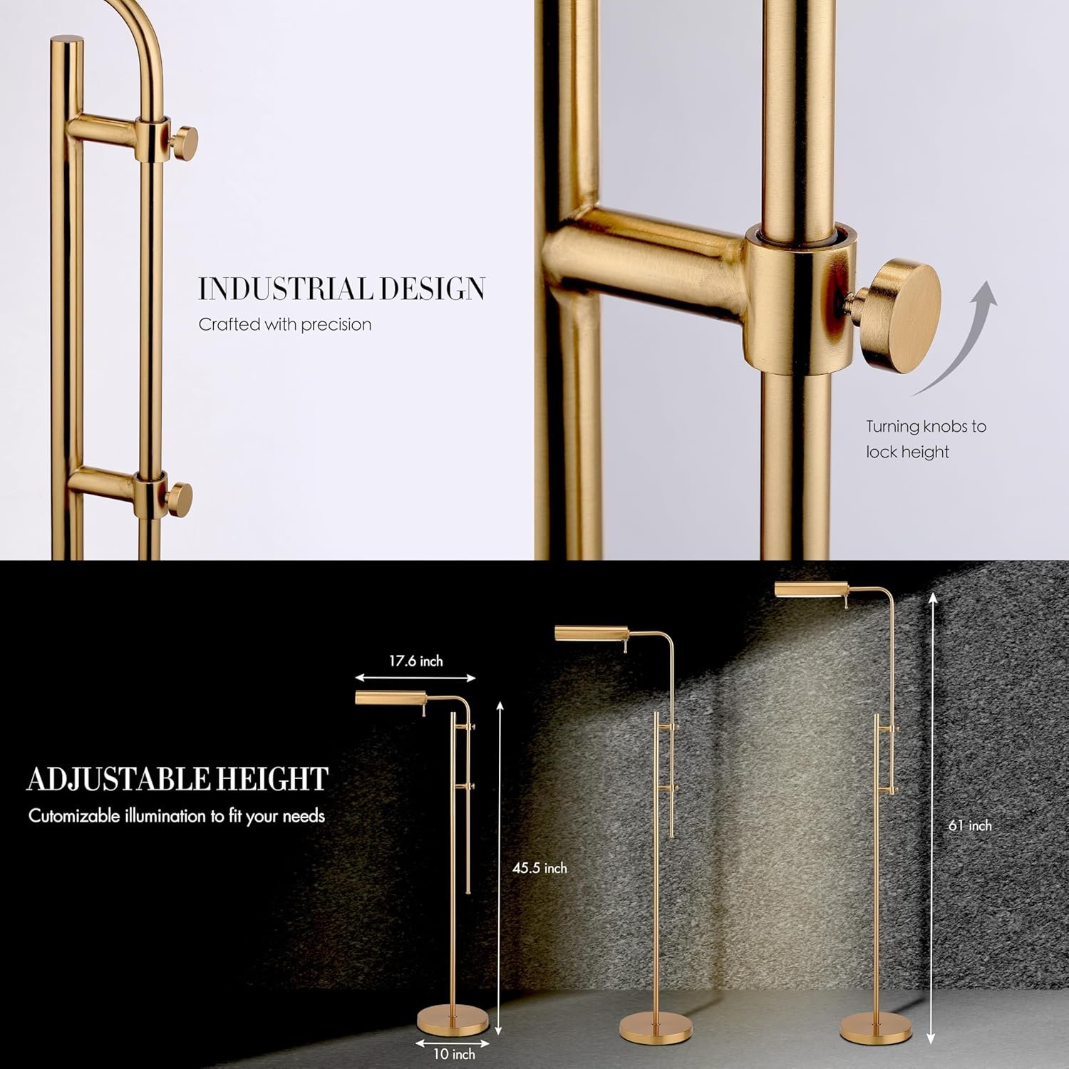 Customizable Illumination: Experience the epitome of versatility with the Cedric lamp’s adjustable height, ranging from 45 inches (lowest height) to 61 inches (highest height), in addition to its 360-degree swing arm and 180-degree swivel lamp head. Tailor your lighting to perfection, whether you’re reading, working, or simply setting the mood.