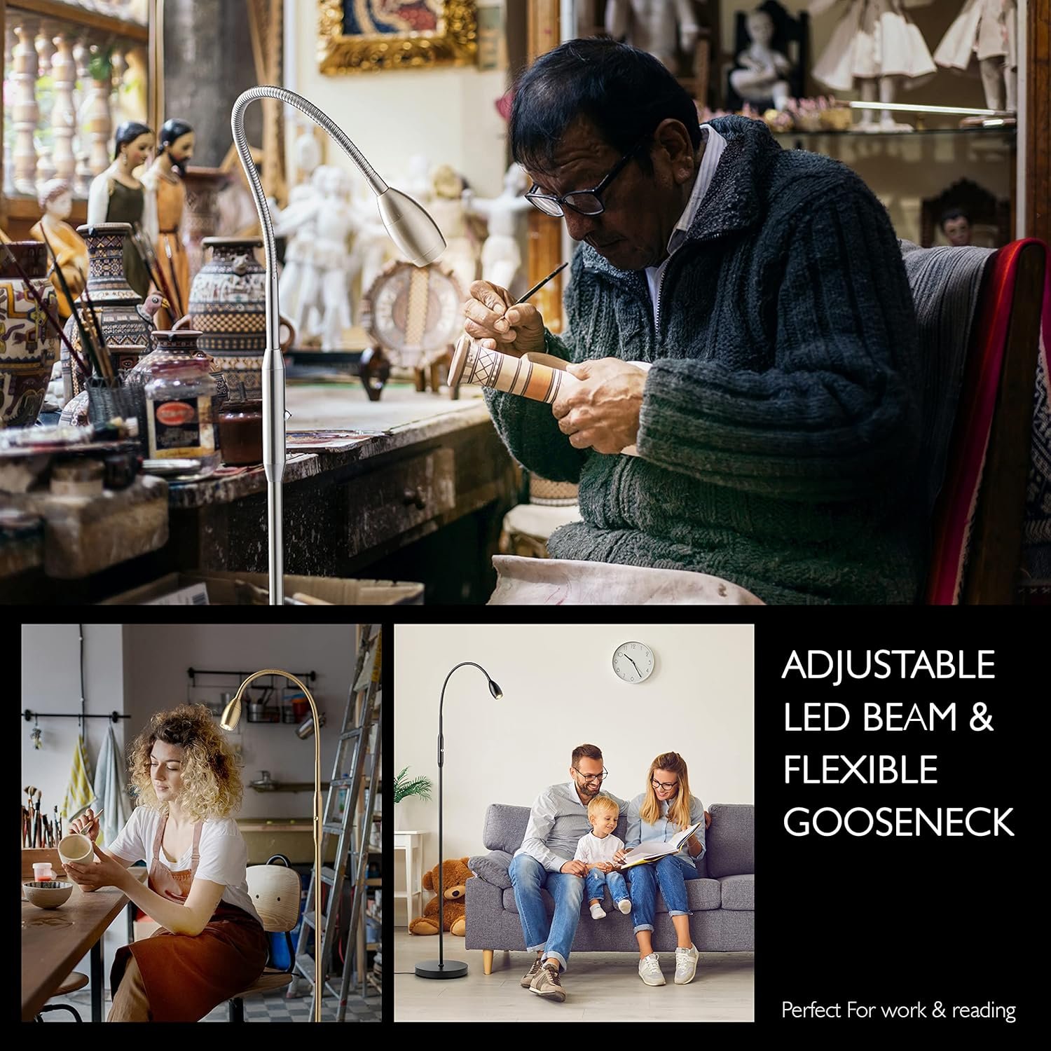 Flexible Goose Neck- Maneuver the lamp in any direction. Its durable metal gooseneck supports 360 degrees of motion. Change the direction of light at any time to fit your needs. Ray is an excellent companion for Hobbies, crafting, sewing, puzzles, reading, etc.