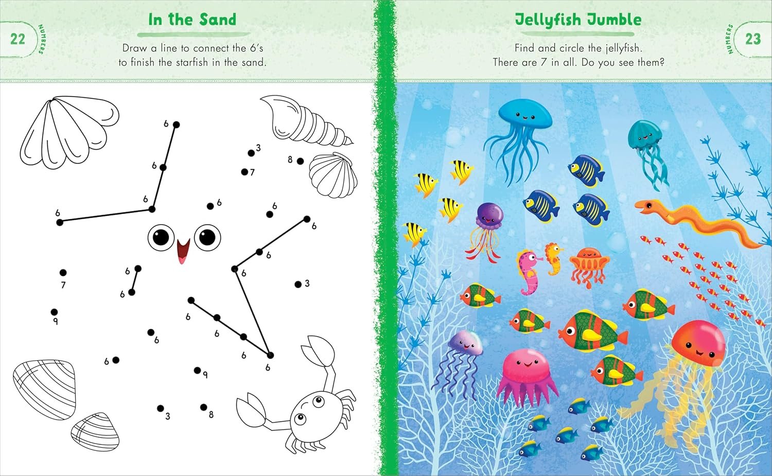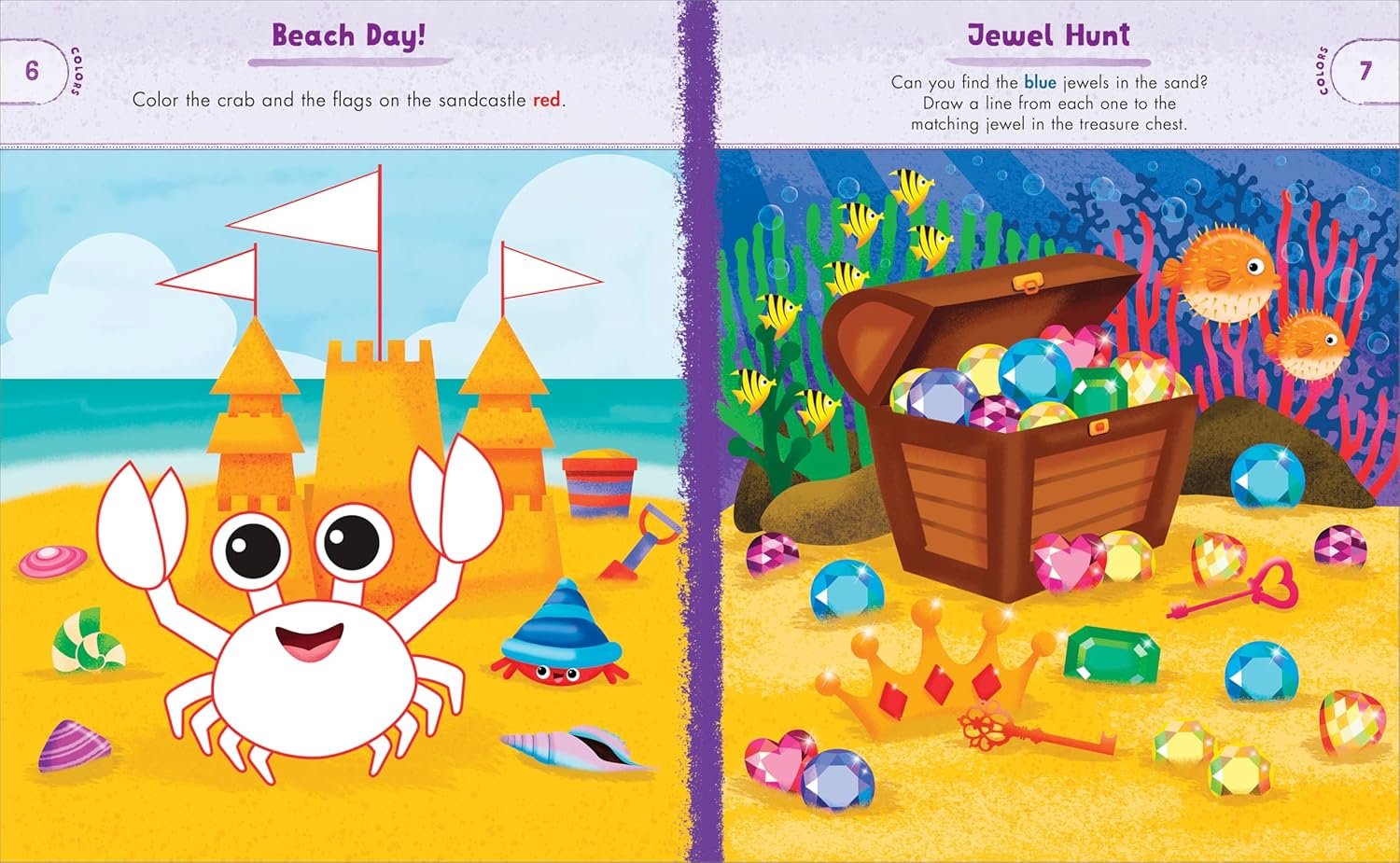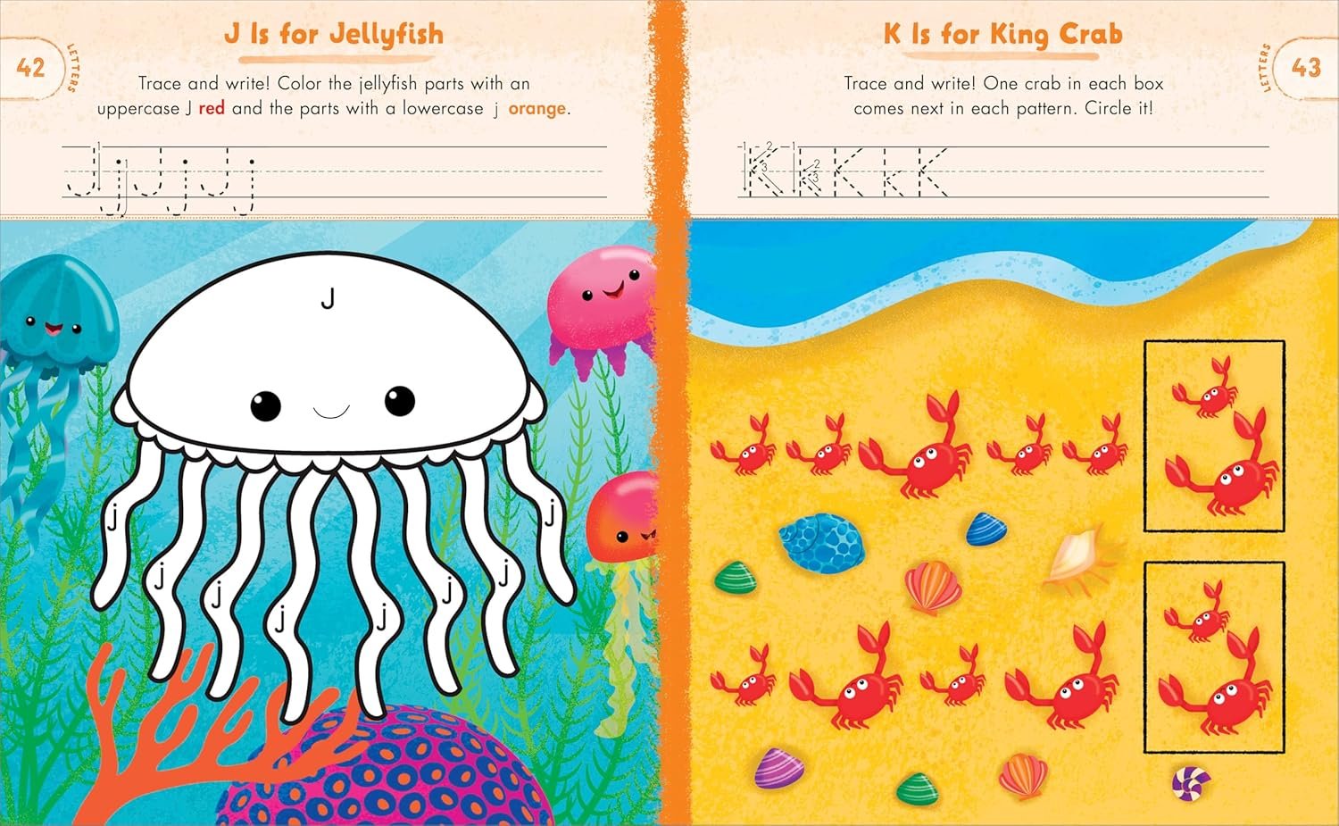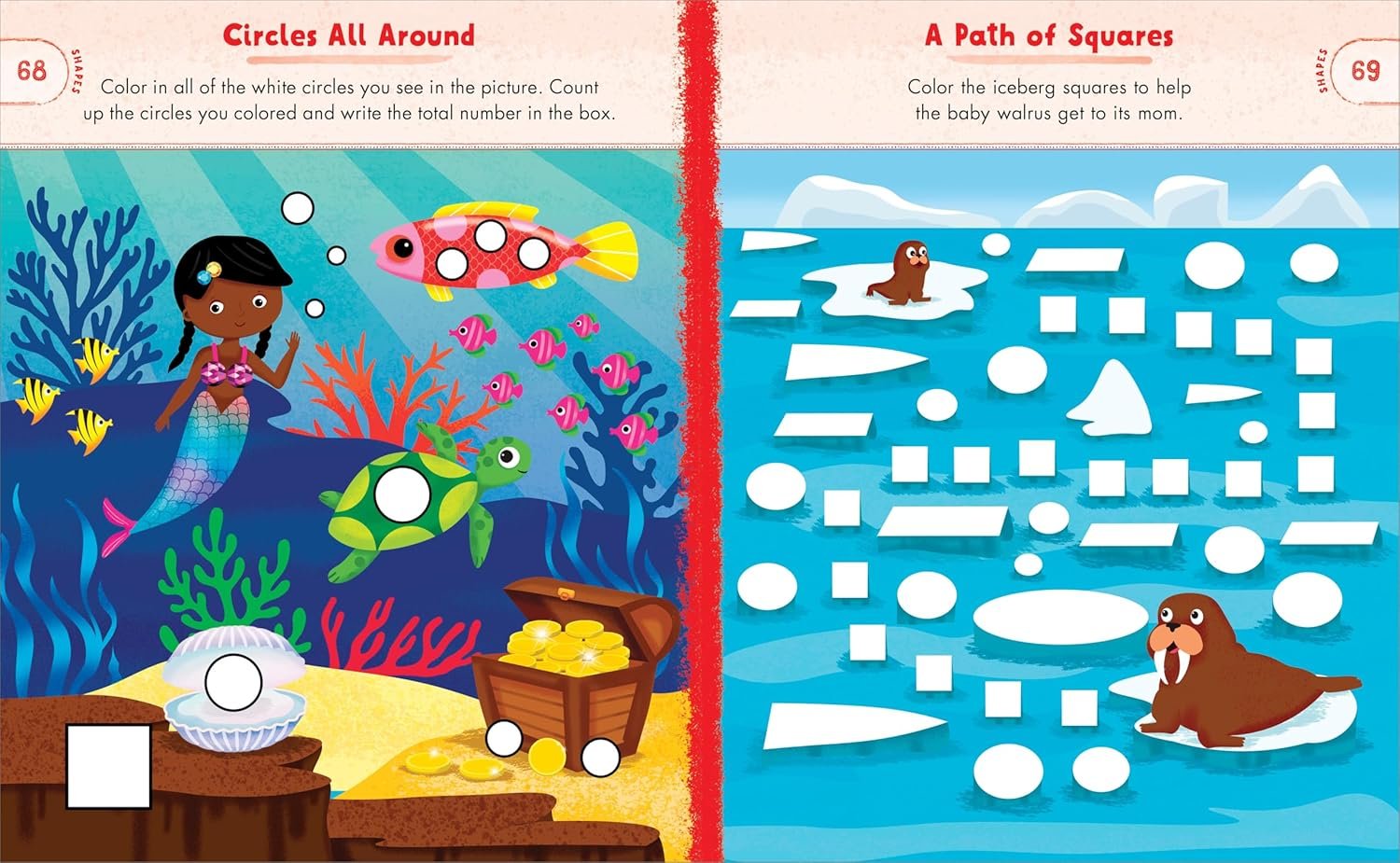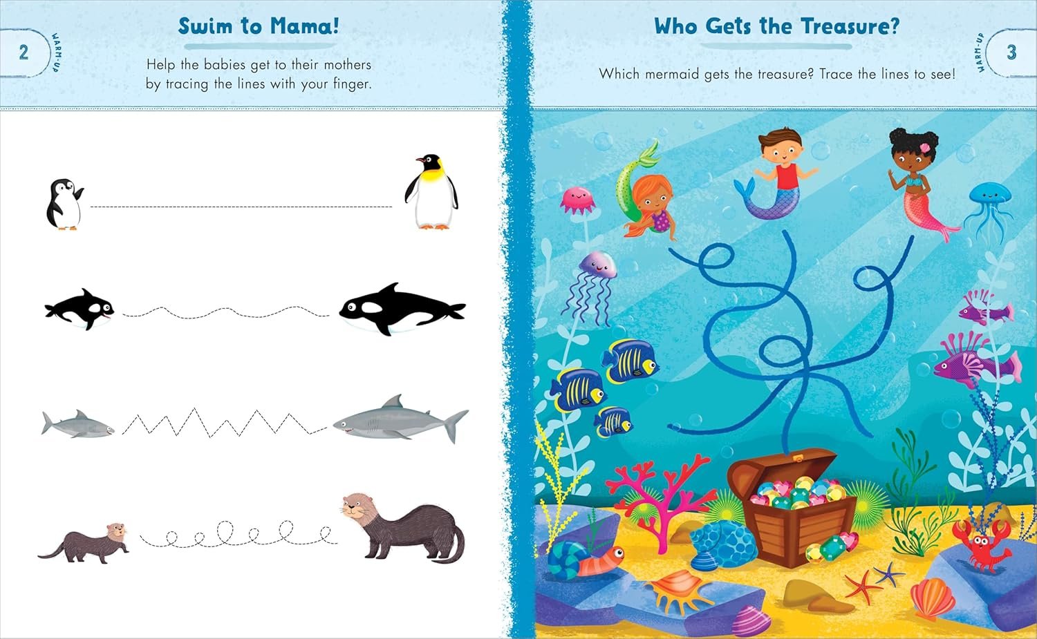 Discover new ways to learn and play with the help of colorful creatures under the sea! This preschool activity book immerses kids in an underwater adventure that teaches colors, numbers, letters, words, shapes, and patterns―perfect for summer learning. Watch kids’ eyes light up as they connect the numbered dots on an octopus, color jellyfish by letter, and help mermaids find treasure by tracing a path. The school of fishy friends in this ocean animal activity book makes learning exciting!