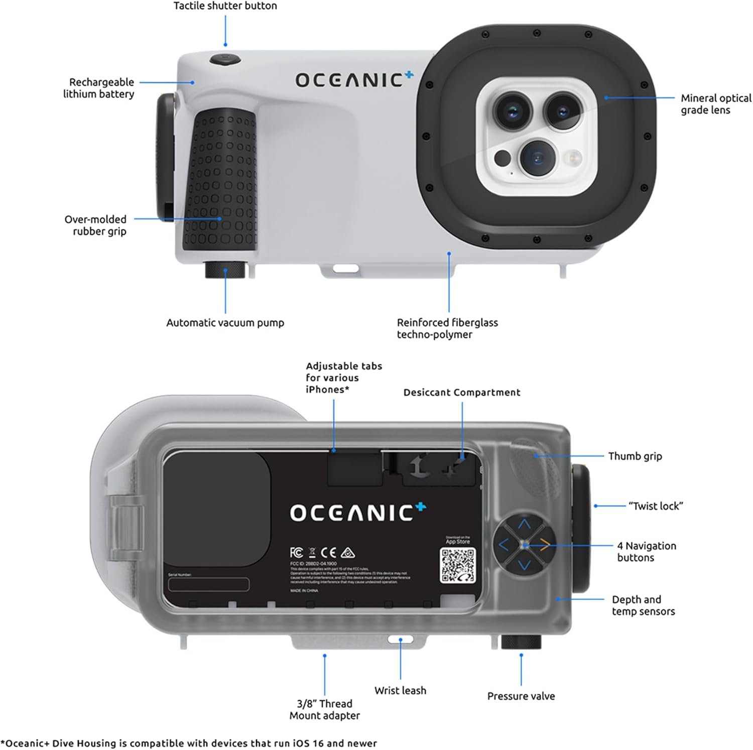 OCEANIC+ Underwater Housing | Turn Your iPhone Into a Dive Computer & Underwater Camera | Waterproof Depth to 196ft | Great for Scuba Diving & Snorkeling | Compatible iPhones That Run iOS 16 or Newer