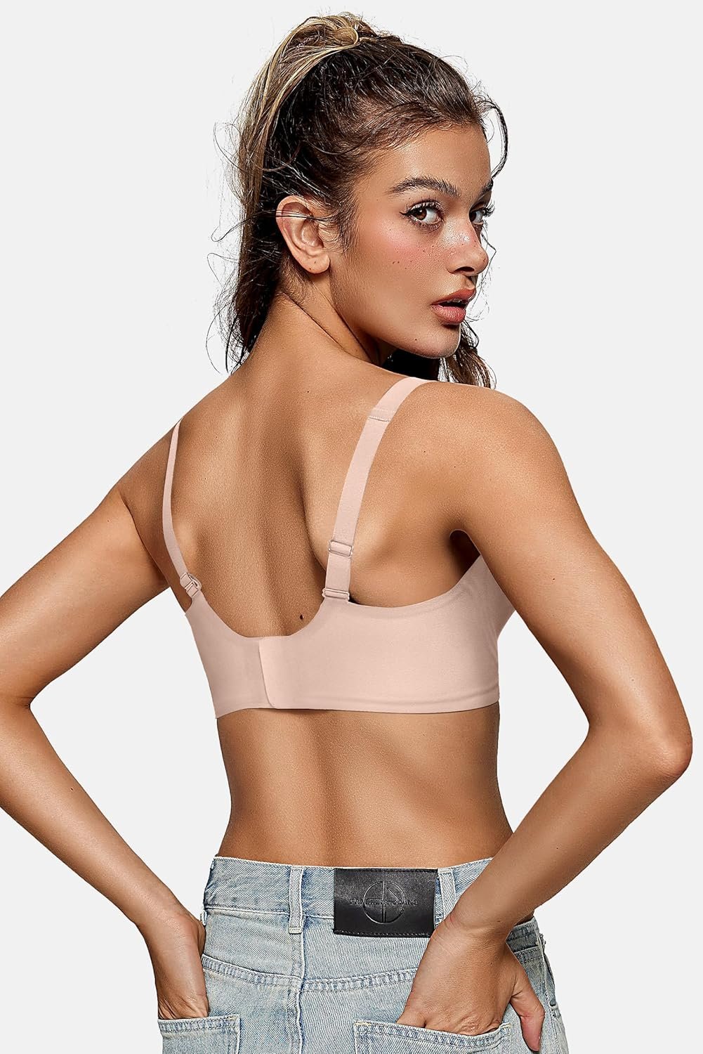 OEAK Womens Deep V Bras Wireless Comfortable Bra Supportive No Underwire Bras Tshirt Push Up Bralettes Plunge Seamless Bra