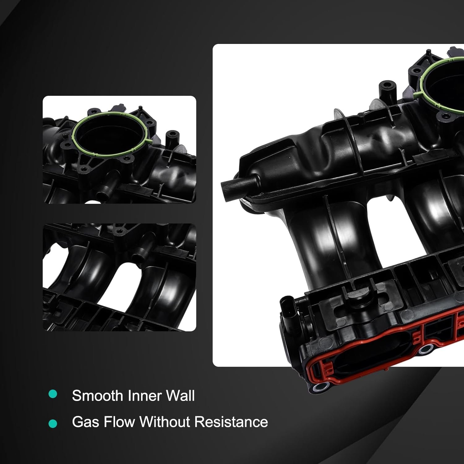 【Strict Quality Control】The intake manifold is built from enhanced plastic to give it durable and excellent performance. It has a gasket built-in design for easier installation and better air-tightness. The smooth inner wall of the manifold makes it super air-intake capacity, driving more smoothly and safely.