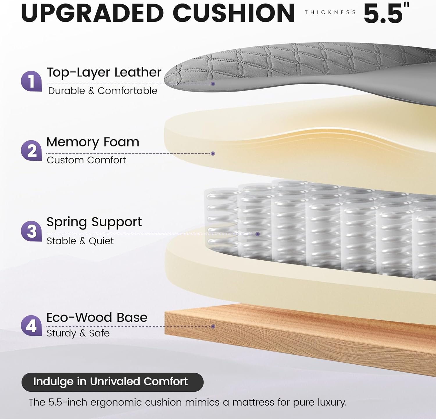 𝐑𝐨𝐛𝐮𝐬𝐭 𝐚𝐧𝐝 𝐃𝐮𝐫𝐚𝐛𝐥𝐞 𝐀𝐜𝐜𝐞𝐬𝐬𝐨𝐫𝐢𝐞𝐬: This desk chair is constructed with high-grade solid frames and heavy-duty metal components, including an SGS-certified class 3 gas cylinder and a BIFIMA-approved metal base, which can bear up to 400LBS. It undergoes rigorous quality checks, promising long-lasting durability and reliable performance over time. The frame of the memory foam cushion is made of FSC-certified wood
