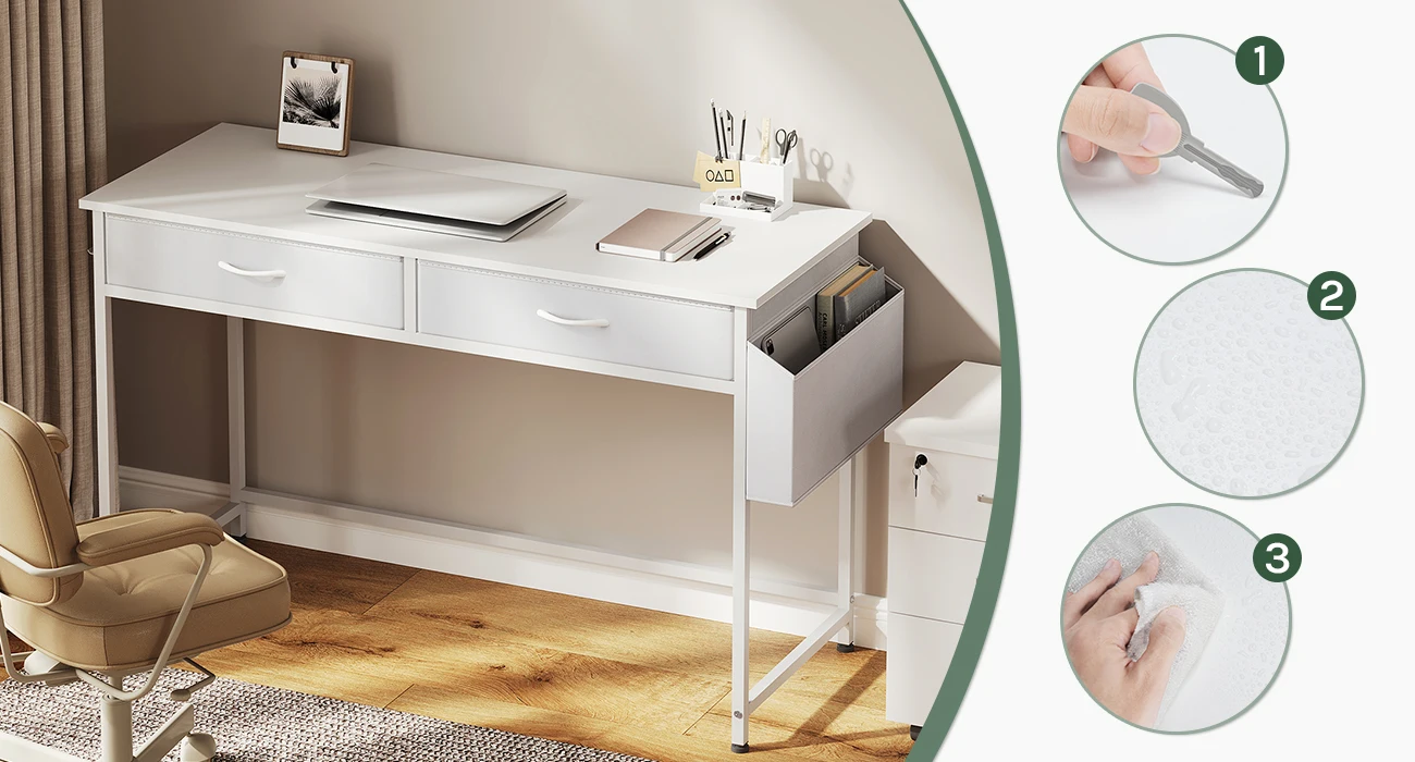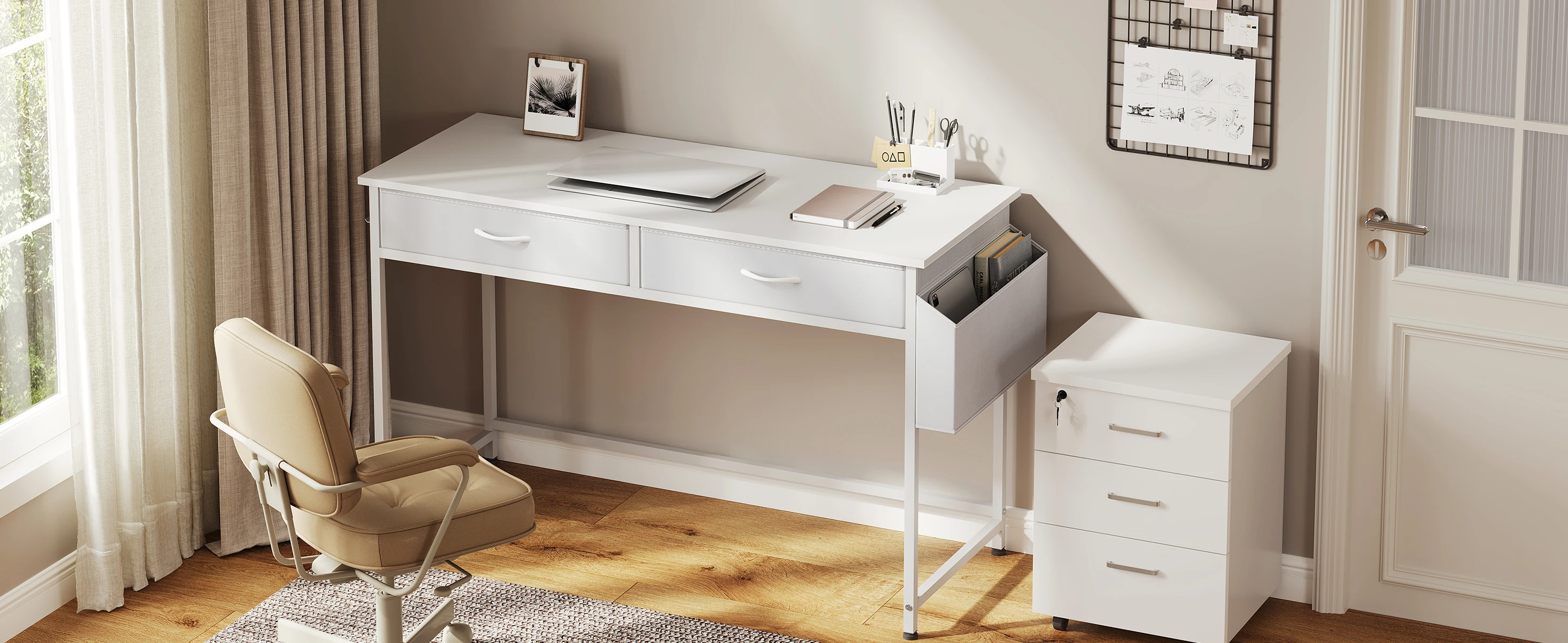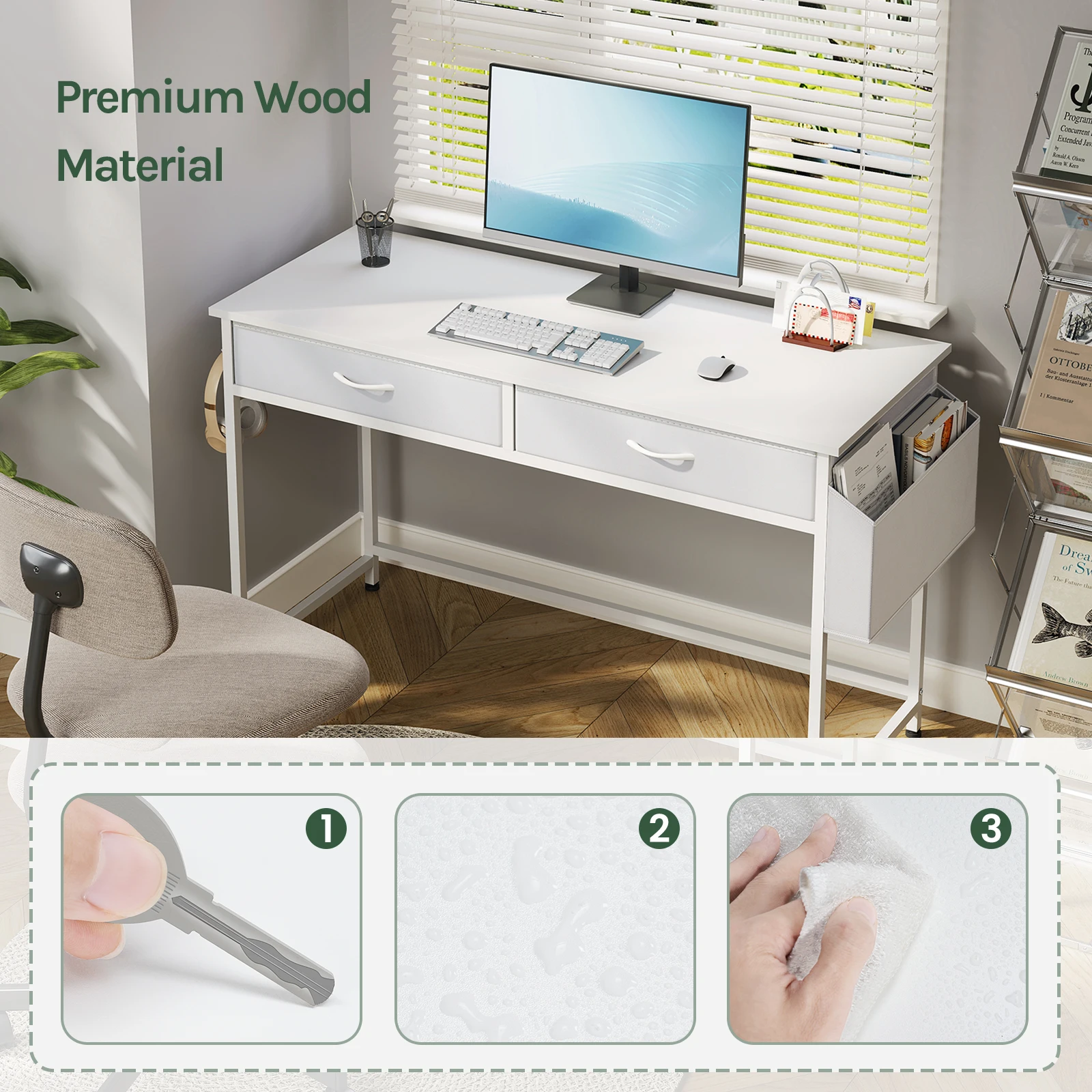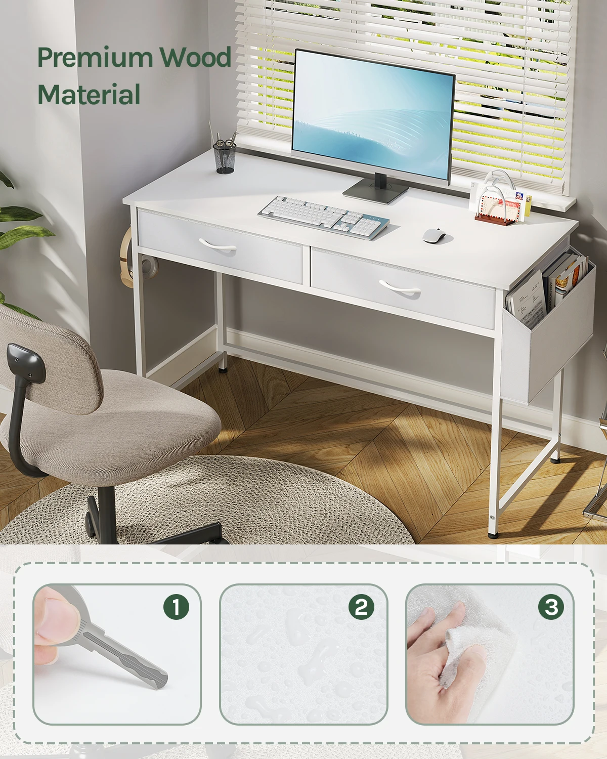 DESK CON DESCUENTOS: La gran tapa de escritorio (100 x 48 cm/120 x 48 cm) le brinda mucho espacio para trabajar.Este escritorio para computadora está equipado con 2 cajones de tela que proporcionan espacio de almacenamiento para libros, vasos, cosméticos y otros artÃÂculos diarios para mantener la mesa ordenada.