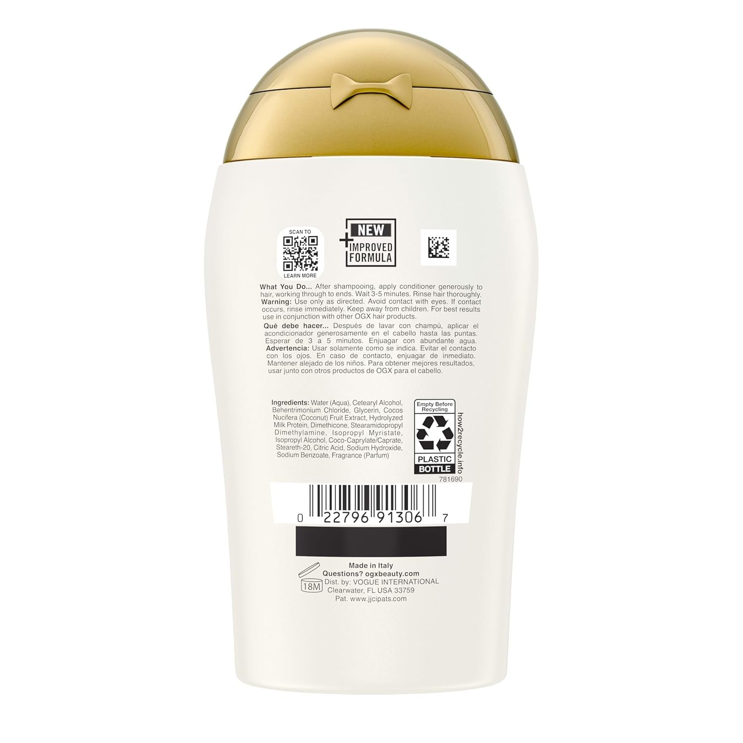 Hydrate & restore hair with OGX Nourishing + Coconut Milk Conditioner. This conditioner from the #1 Hair Repair Brand* delivers immediate softness after the first use. Our new & improved formula protects hair from excessive loss of lipids & proteins which creates frizz & breakage. Now with LipiPro Shield (TM) Technology, the hydrating conditioner provides 2x more protein & lipid protection** for healthy hair. Coconut milk infused formula softens strands for smooth & healthy hair while the creamy coconut, white peach & shea butter scent leaves hair smelling irresistible. After shampooing, apply generously to hair, wait 3-5 minutes & rinse. Conditioner carefully formulated to be without sulfated surfactants, parabens, phthalates, microplastics, & dyes. *JJCI calculations based on Scantrack for Hair Care category for the 52 weeks ending 12/02/2023 time period, for the total U.S. marketing, xAOC. Copyright © 2023, Nielsen Consumer LLC **vs. non-conditioning shampoo, with continuous use