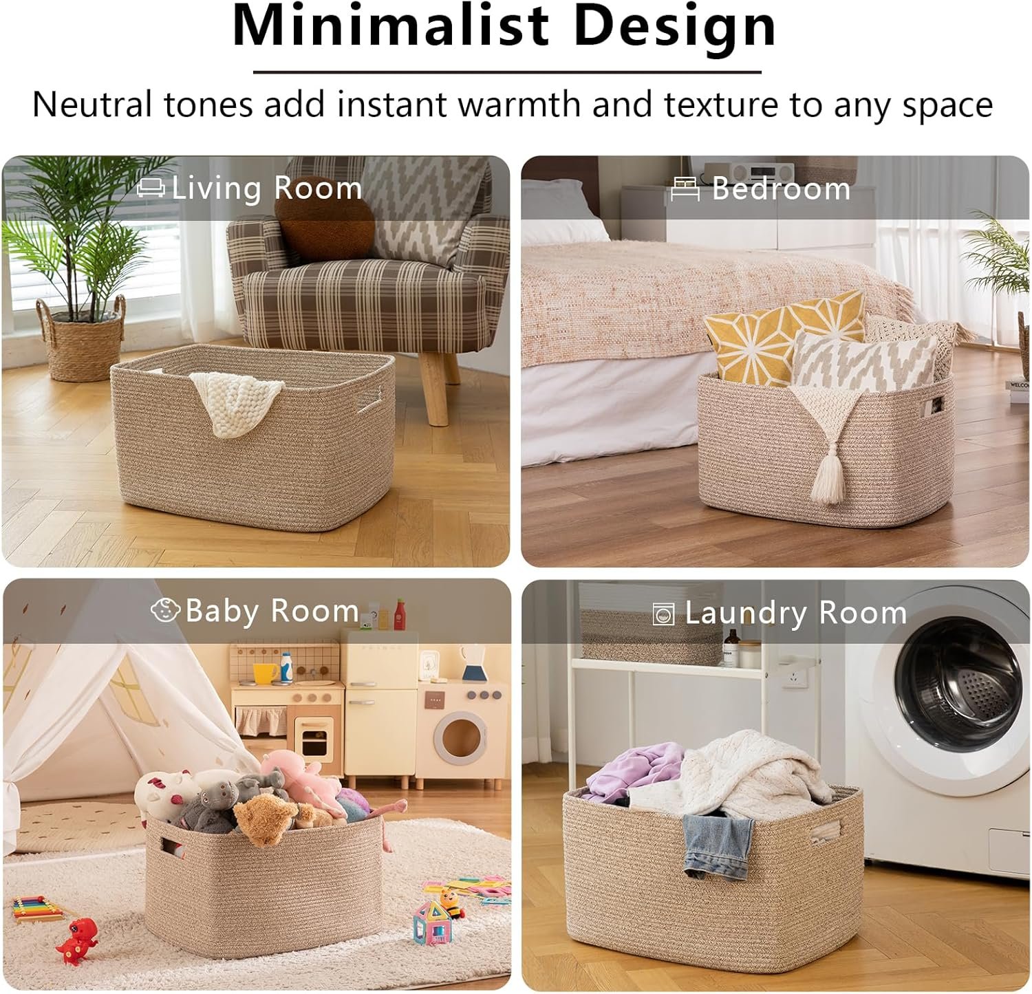 Double reinforced Handles:We use the highest grade cotton rope as raw material and all the stitches are distribution and fine,which makes the toy baskets better wear resistance and durability to be used for many years.In addition, the handle of this large basket has a unique design and is wrapped around with thick double-layer suture rope to prevent tearing and keep its shape and never fall off
