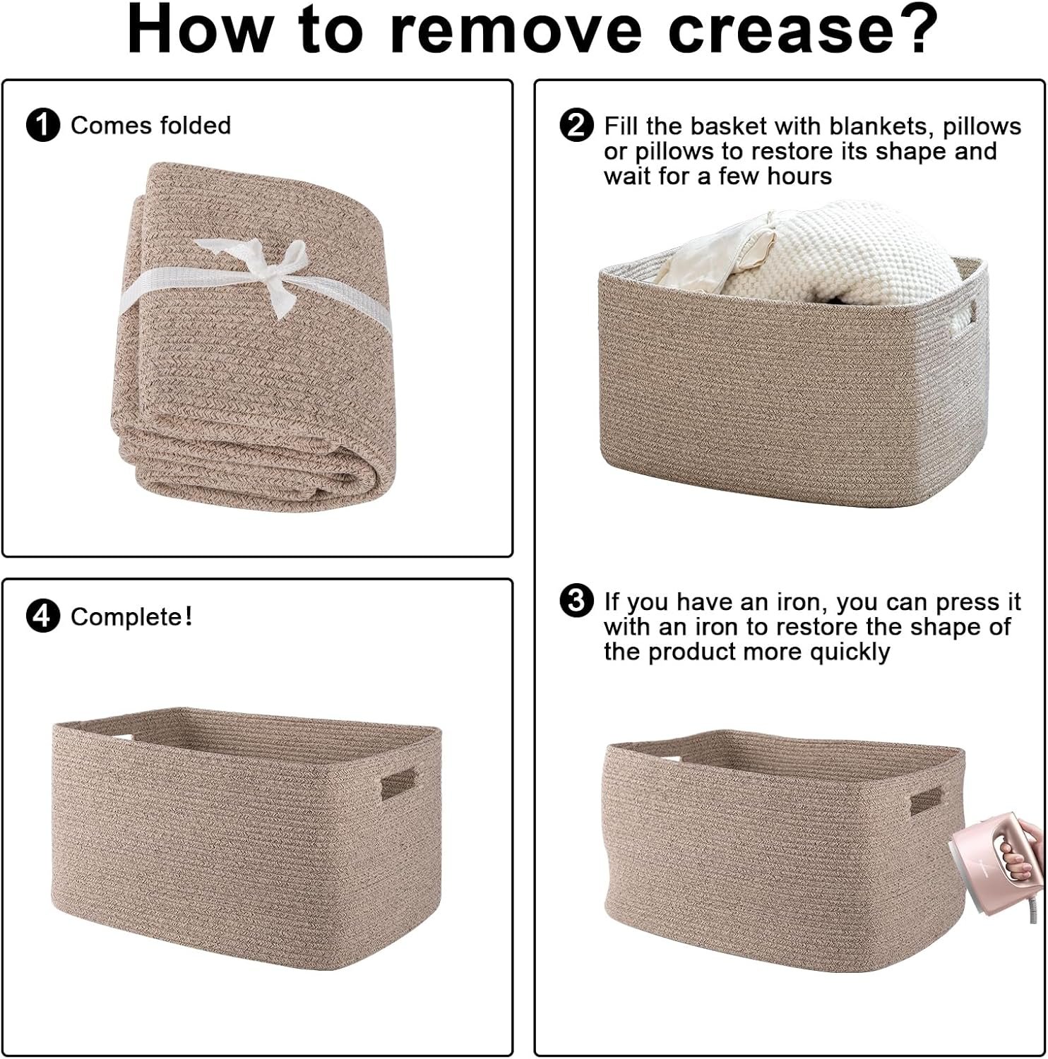 NOTE: The toy basket is folded, but it will turn back to its elegant shape quickly if you fill it with some pillows or blankets, and iron is great idea to remove the creases