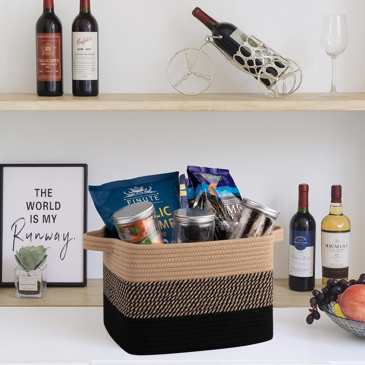 Unique Design:Small rope basket with foldable design and separate built-In handles for easy portability and store. The handle is made of 3-heeled braided rope, comfortable to the touch, even with heavy items your hand is not restrained.In addition the storage basket available in different unique colors. Provide a nice fine Nordic touch to any room of your house