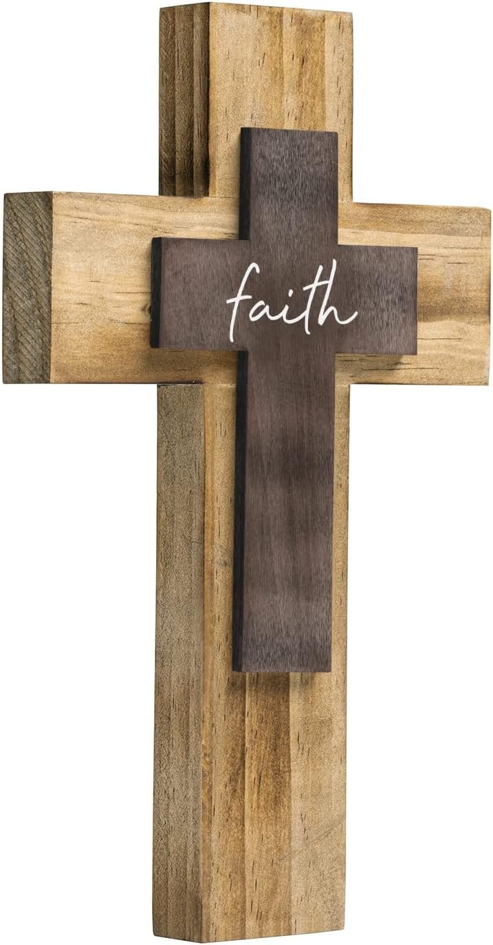OKSQW Wall Wooden Cross Christians Crosses Spiritual Religious Cross With Hook Christmas Wall Hanging Handmade Nature Wood Color with Faith Design for Church Home Room Decor Wood Crucifix Gift