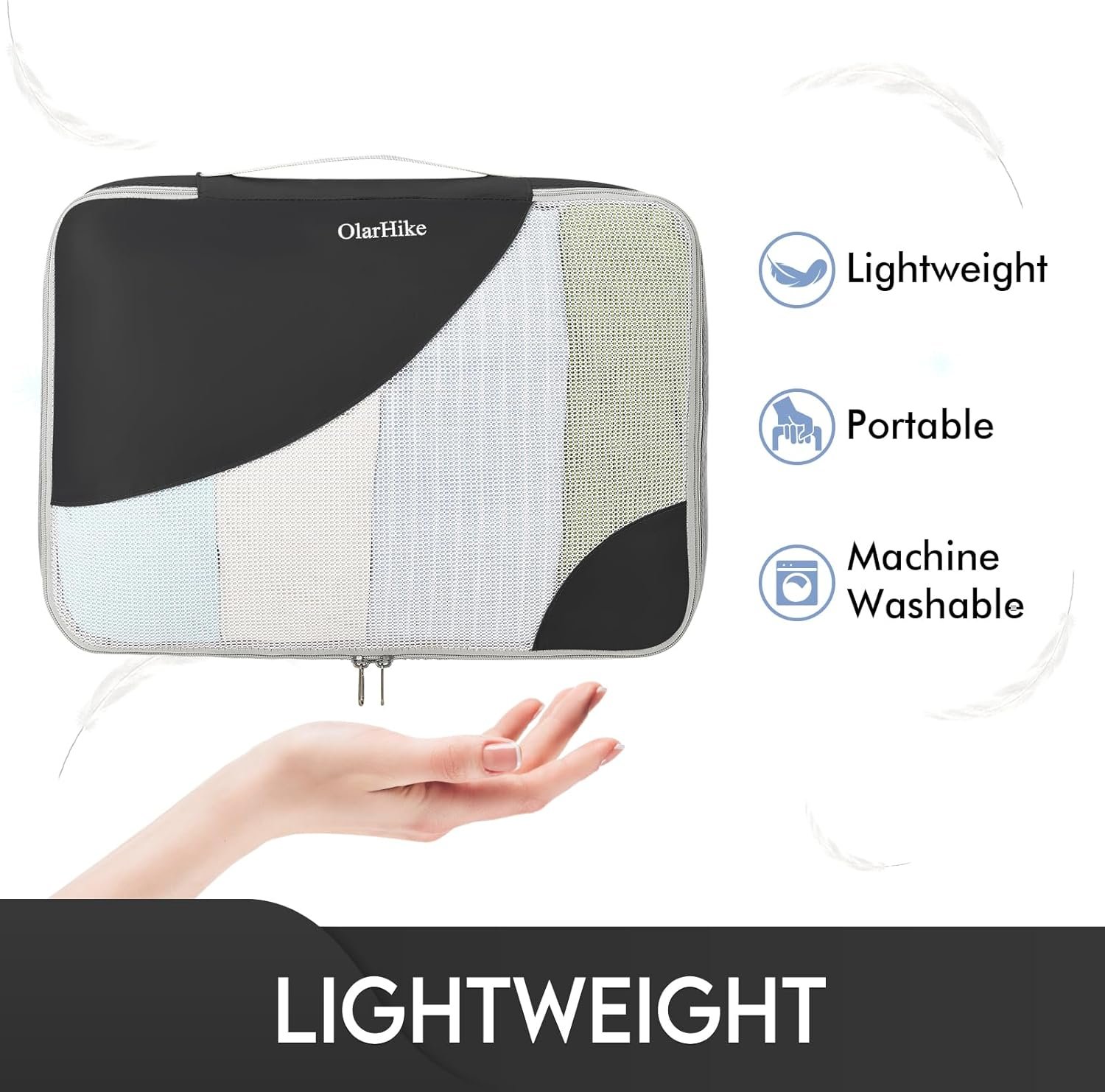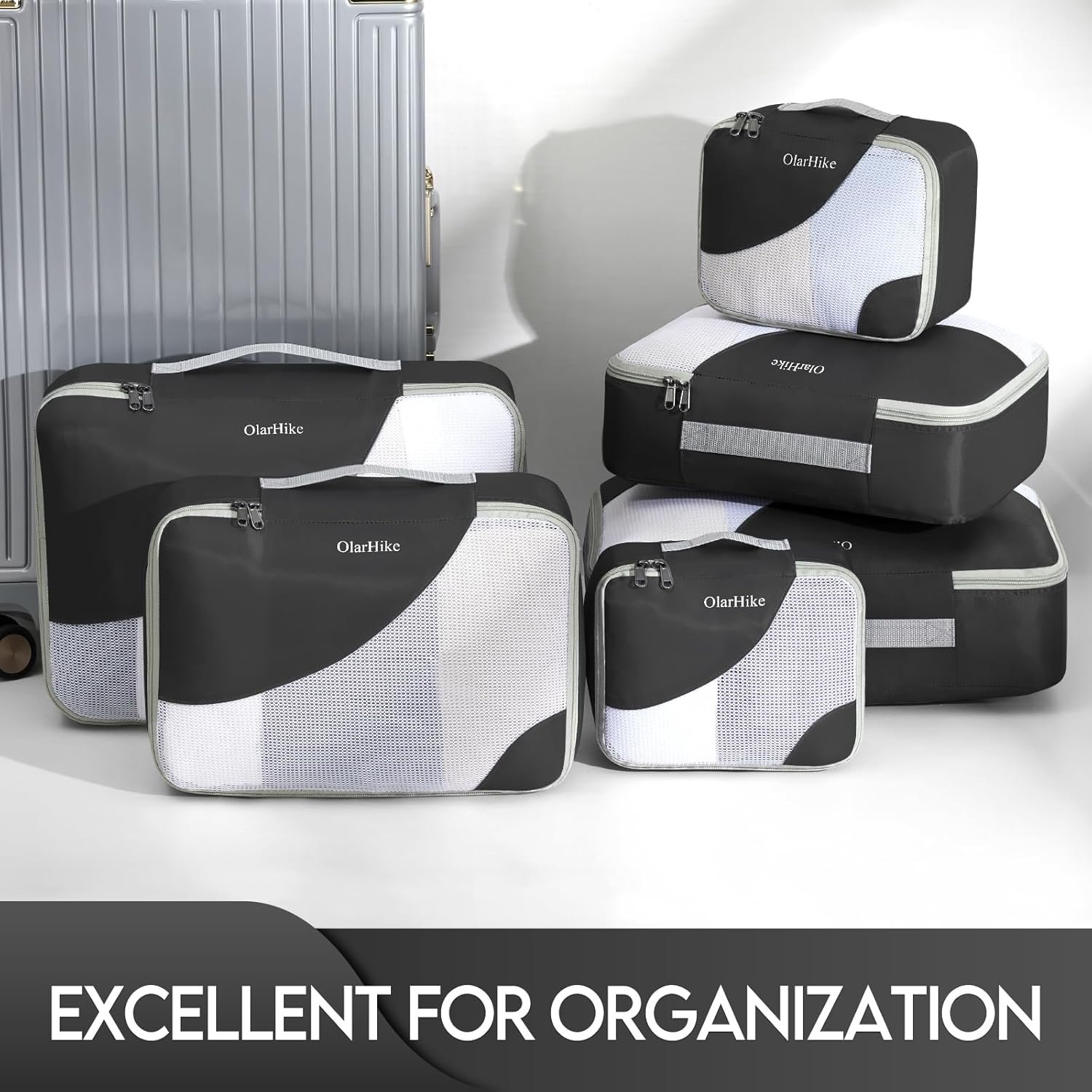 OlarHike 6 Set Packing Cubes for Travel, 3 Various Sizes(Large,Medium,Small), Luggage Organizer Bags for Travel Accessories & Essentials, Storage Cubes for Carry on Suitcases(CarbonBlack)