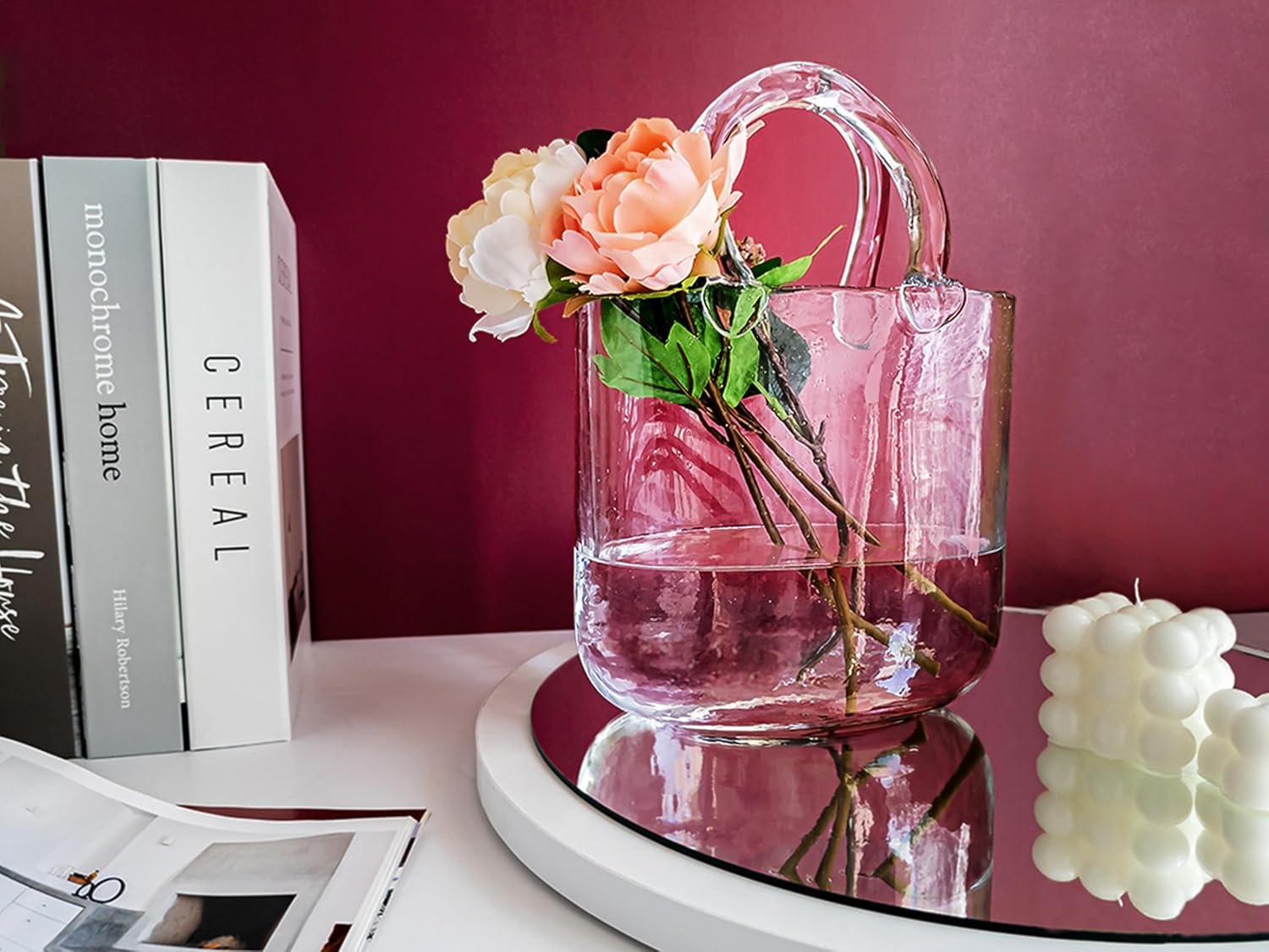 Food-Grade Safe: Crafted from high-quality, food-grade glass, this glass purse vase is perfect for serving drinks and adds an attractive modern room decor,unique vase for flowers