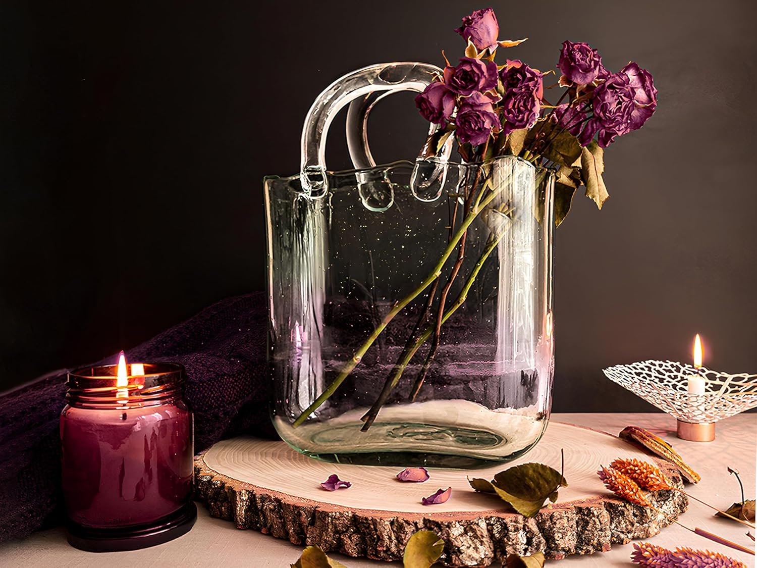 Show the Beauty of Your Flowers – Unlike plastic, ceramic or metal, this glass bag vase shows off the entire fake flowers. Add stones or sand to the bottom of your clear bag vase for flowers