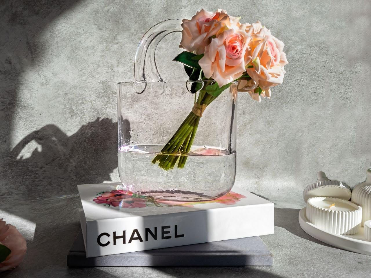 A Work of Art -This purse flower vase is artfully handcrafted in durable, transparent glass. It can hold a floral arrangement or stand on its own. Elevate your home decor with this glass vases for centerpieces. Unique flower vase decorative . modern vase for flowers