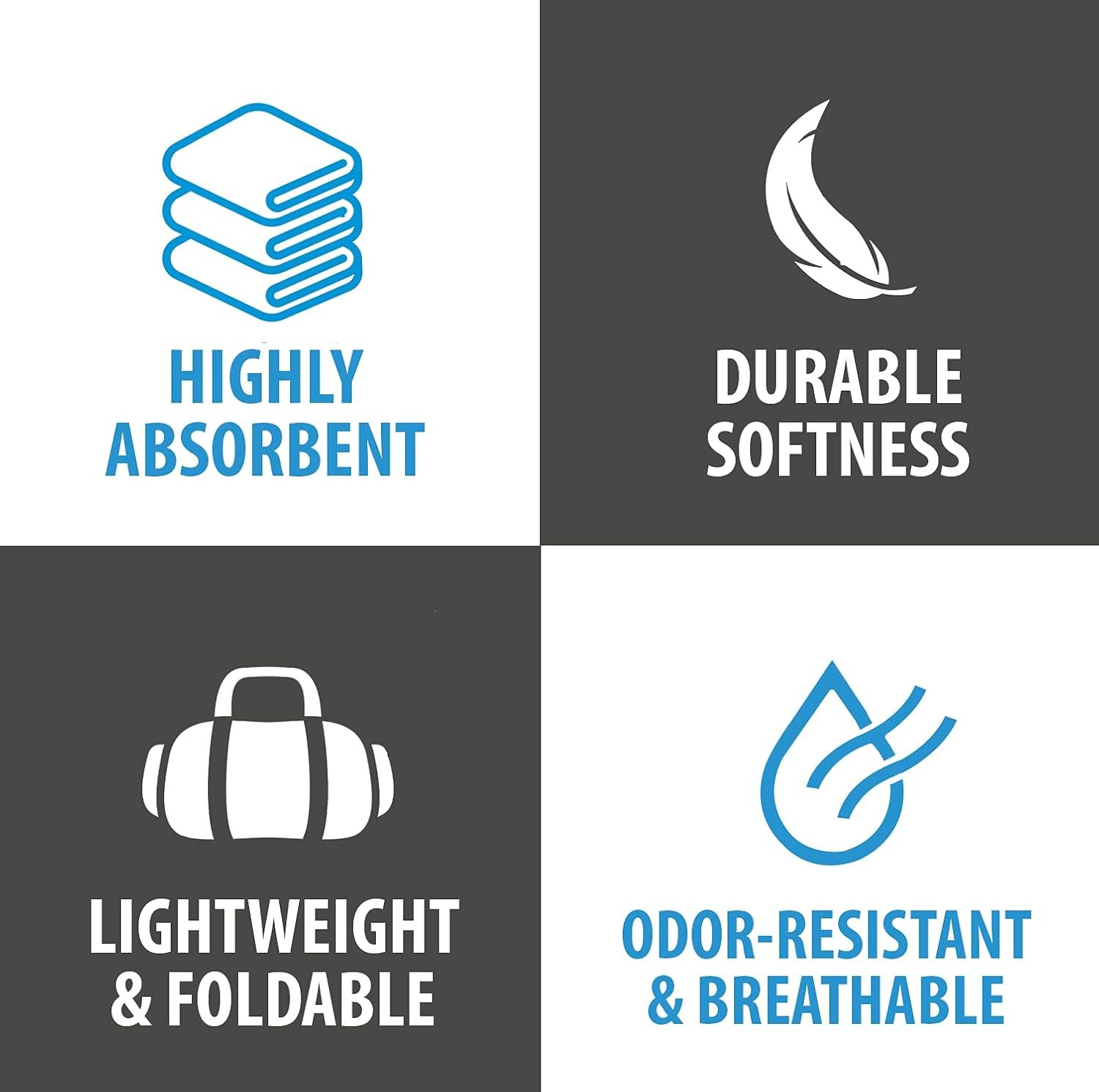 FAST DRYING – Made with fibers that are much thinner than a standard microfiber towel, our quick dry towels have 4x as much surface area, allowing them to absorb more water and dry up to 3x as fast.