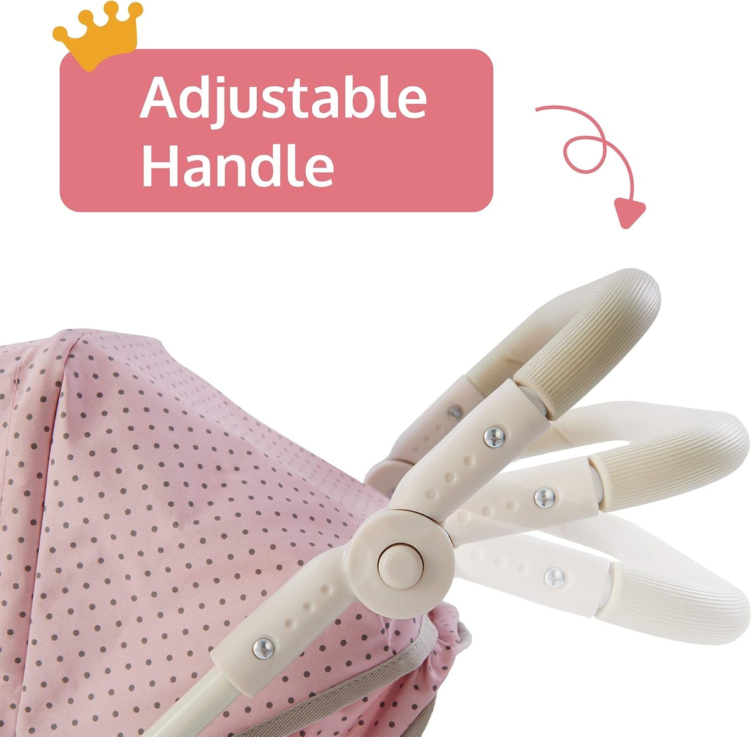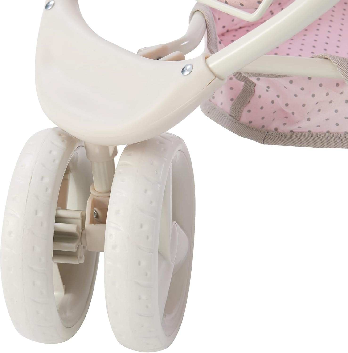 Olivia’s Little World 2-in-1 Convertible Baby Doll Stroller with Retractable Canopy, All-Terrain Wheels, and Adjustable Handle, Cream and Pink with Gray Polka Dots